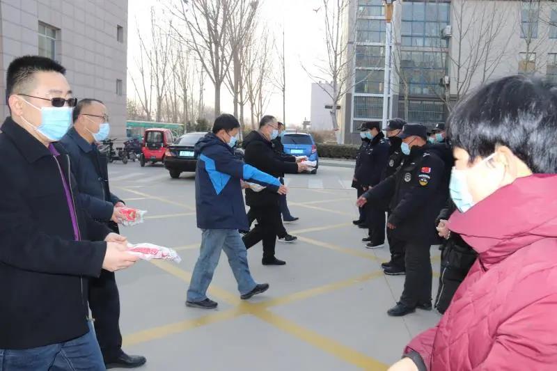 2月10日上午,新春佳节来临之际,党委副书记姜忠明代表学校党委看望慰问寒假期间坚守岗位的安保后勤工作人员,为大家送上新年的祝福和水饺、花生、瓜子等慰问品。