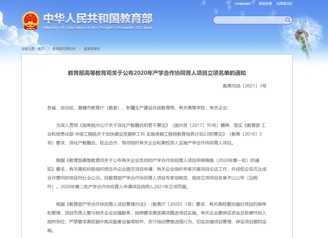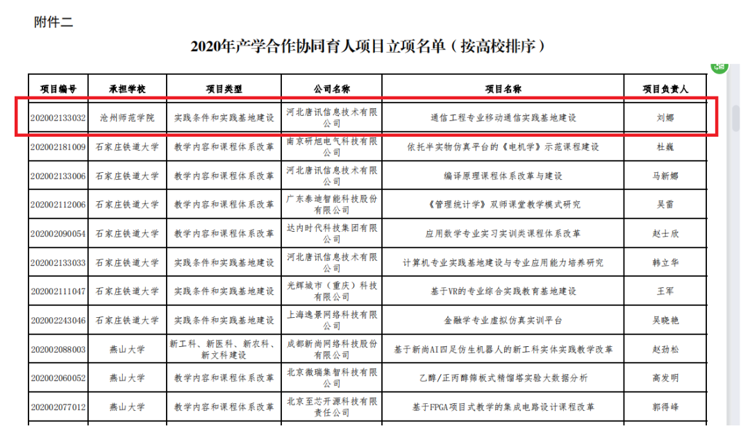 在近日教育部网站公布的教育部高等教育司2020年产学合作协同育人项目中,伟德物理与信息工程学院教师刘娜主持的项目《通信工程专业移动通信实践基地建设》成功获批立项,这是伟德首次成功立项教育部高教司产学合作协同育人项目,为推进产教融合工作奠定了坚实的基础。