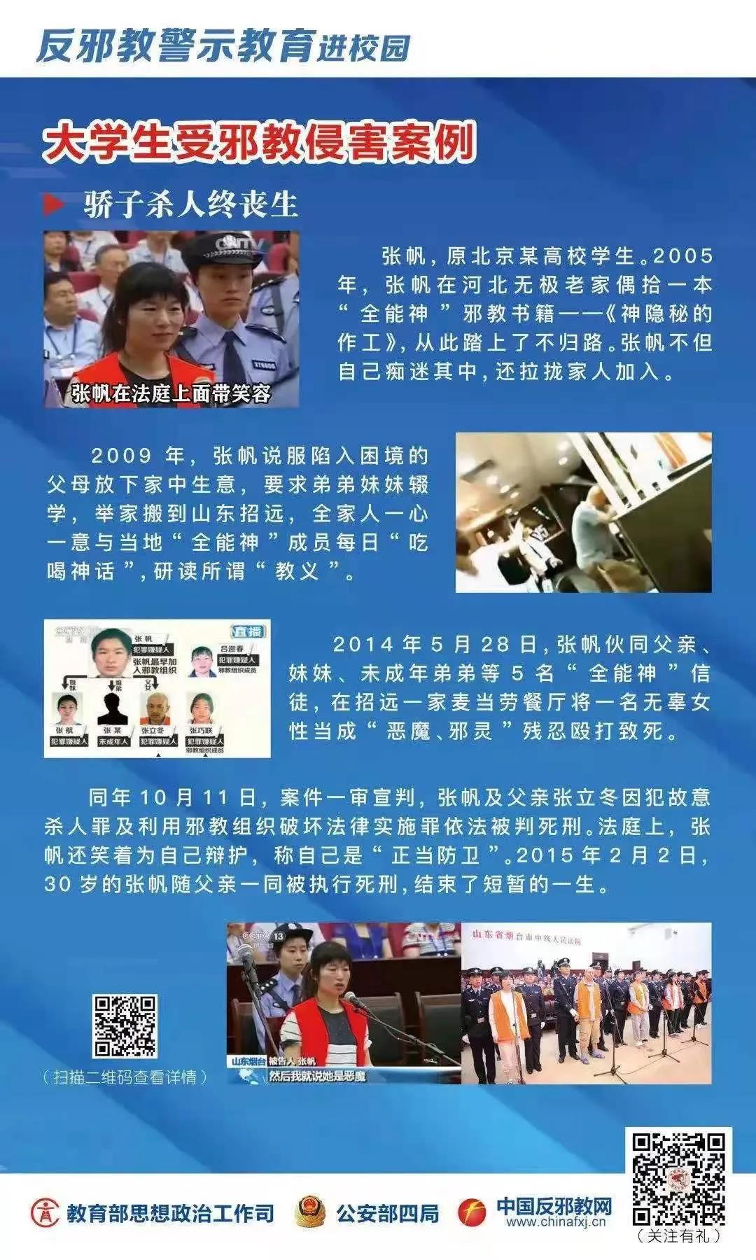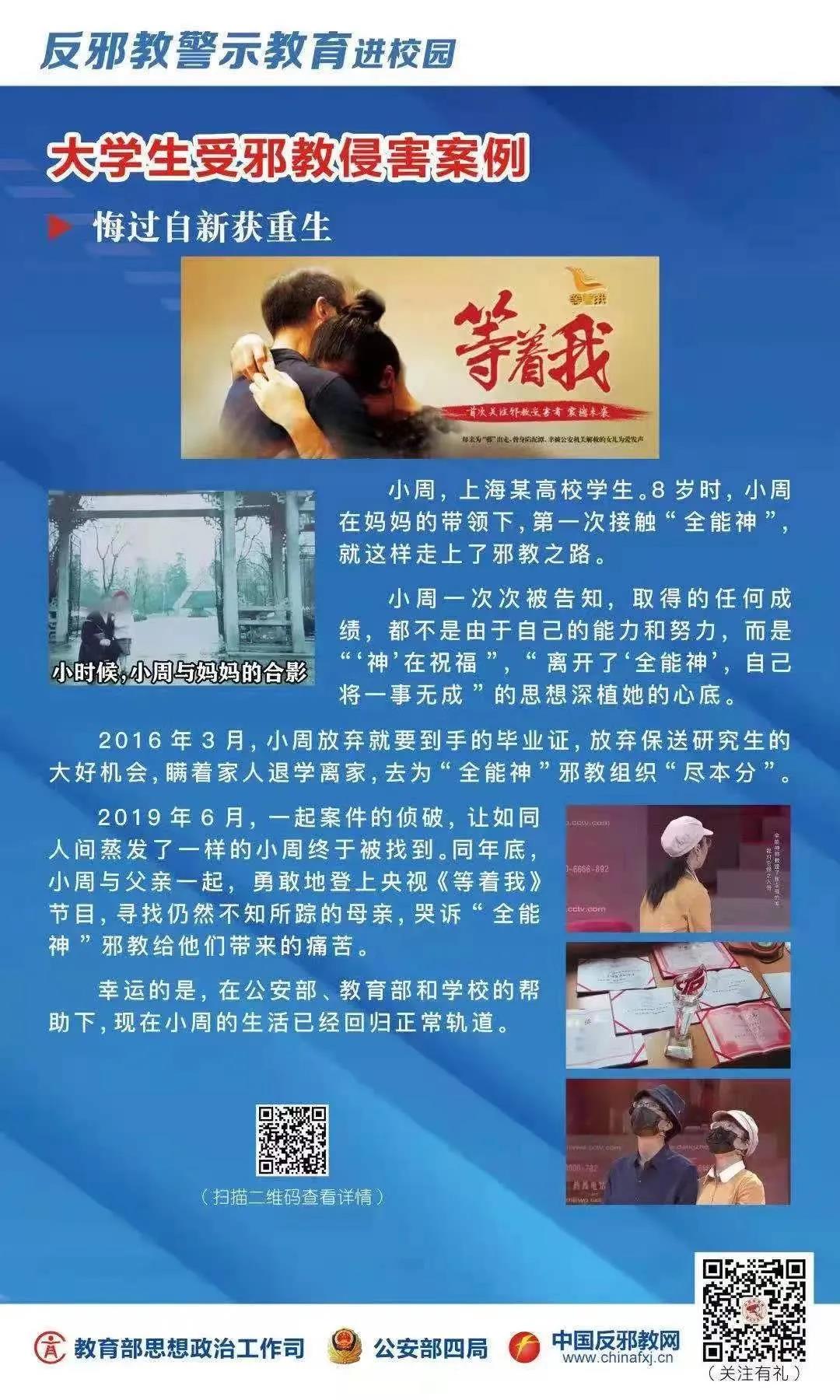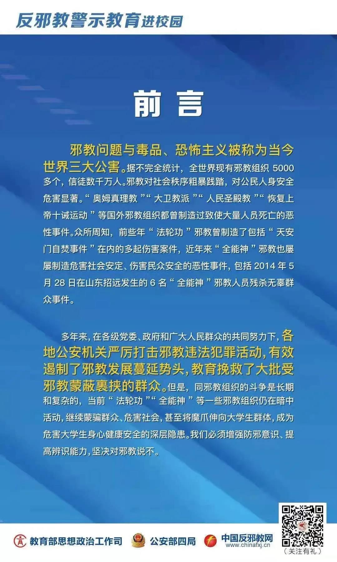 活动受到了师生的热烈欢迎,切实增强了广大师生的国家安全意识和辨别、抵御邪教的能力,师生纷纷表示对邪教说“不”,对邪教言论不听、不信、不传,对邪教非法活动“不约”!