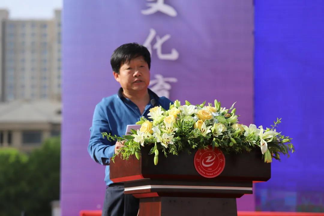 共青团沧州市委书记宋立楠,教育局团工委书记董金花,校党委副书记姜忠明,副校长高颖、周振平,河北建设集团股份有限公司沧州分公司总经理、河北省劳动模范刘青女士出席开幕式,为文化艺术节按下启动键。