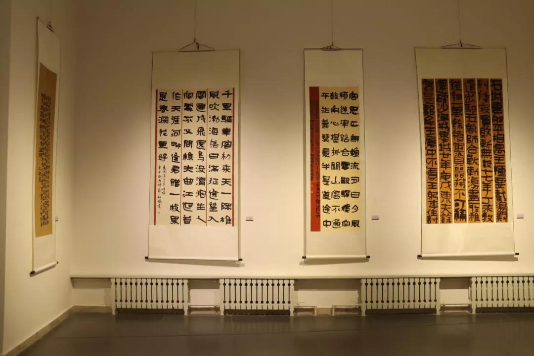 此次展览作品,每人三幅,一幅临摹、两幅创作,涵盖篆刻、隶书、楷书、行书、草书等多种书体。既有对黄庭坚、颜真卿等经典名家名作的临摹再现,也有根植运河、关照现实的创新创造。创造作品内容全部围绕沧州本土和大运河文化,响应国家弘扬大运河文化的号召,以此向母校答卷、向关心爱护书法学专业的业界前辈汇报,向党的百年华诞致敬。