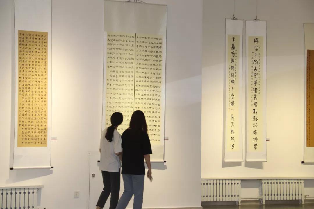 文学院院长王金萍和书法学专业学科负责人田雨潇分别介绍了书法专业发展成就和参展作品情况。文学院党总支书记孔令升主持开幕式。学生代表张雅雯分享了创作心得并带领全部同学致答谢词。毕业生们齐声高喊“老师辛苦了”,让展览更显暖意融融。