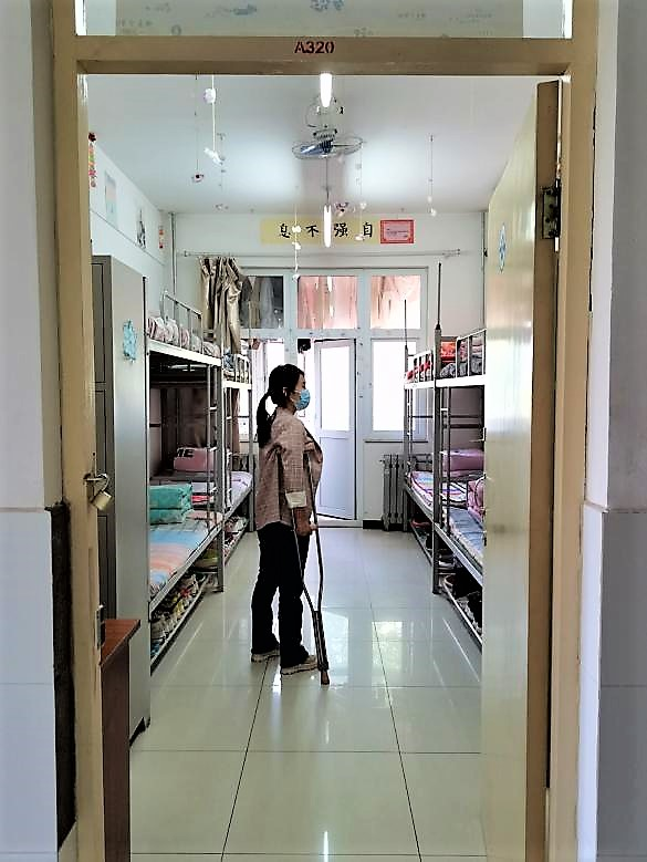 除了教学任务外,刘曦还担任着五年一贯制两个班的班主任。这是伟德一群特殊的大学生,他们平均年龄未满18岁,教学和日常生活全部按照高中模式管理,早操、课间操、晚自习以及管理班级、学习、卫生、纪律、活动等都需要班主任事事参与。刘曦无论伤病与否,从未耽误过一节课,也没有落下过一个晚自习。从秋到夏,从轮椅换到拐杖,她每日坚持进教室、进宿舍、到操场,有条不紊、认着细致地处理着每一项学生工作。新学期任务重,班级的事务繁多,小到每一次早操、晚自习大到班会团课教育、学生的评优评奖、疫苗接种、特色活动的组织安排等,她全部亲力亲为,无一懈怠。