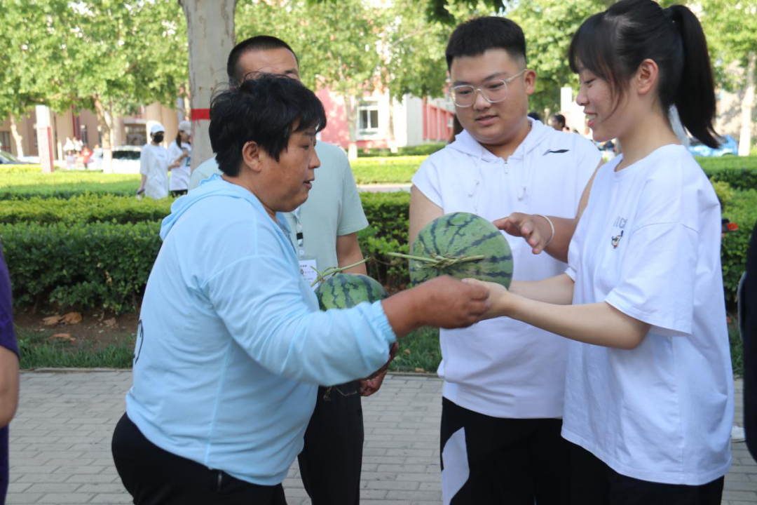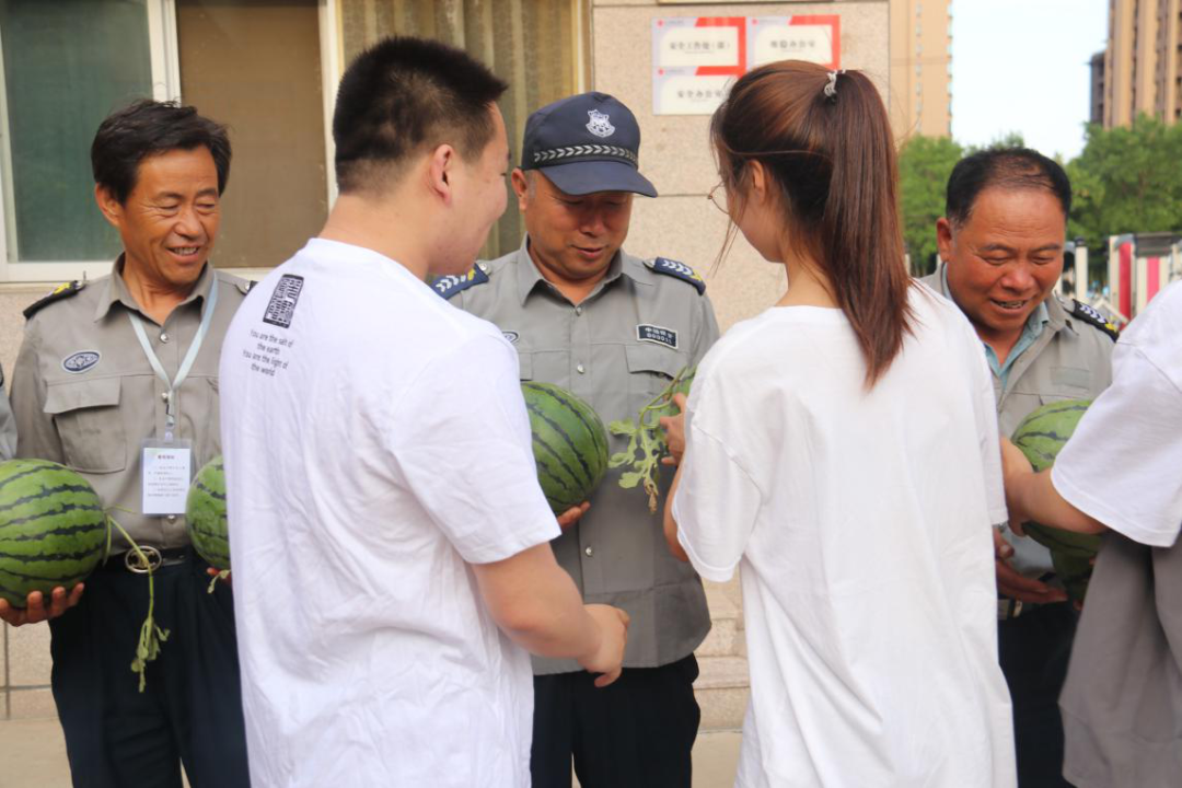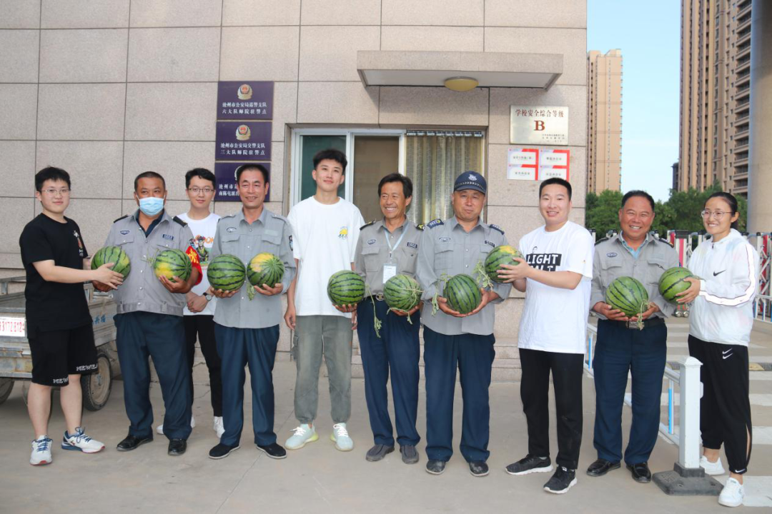 6月15日,在伟德2021届毕业生离校前夕,他们将这份感动和感恩化为实际行动。来自各学院的17名毕业生代表“偷偷地”为这些照顾他们日常生活的宿管阿姨、门卫大叔以及保洁员等准备了一大筐西瓜。这份临行前的礼物,甜到了每个人的心坎上。体育学院毕业生刘孝凤说:“真舍不得这些叔叔阿姨们,感恩他们家人一般的照顾。希望一块西瓜能为他们消消暑,照顾我们四年,辛苦啦!”