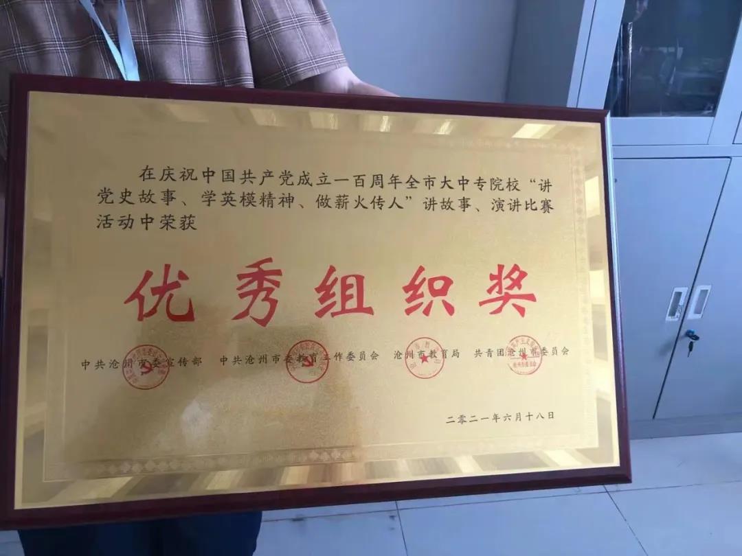 6月18日,由沧州市委宣传部、市委教育工委、市教育局、团市委等单位共同组织的庆祝中国共产党成立一百周年全市大中专院校“讲党史故事、学英模精神、做薪火传人”讲故事演讲比赛在沧州医专学术报告厅正式举行。伟德王奕丹同学以97.6的高分获得第一名,获得一等奖,同时伟德在此次比赛中获得优秀组织奖。为引导广大青年学生积极学习党史,厚植知史爱党、知史爱国的理想信念,让红色基因、革命星火代代相传,伟德宣传部和校团委在全校范围内组织了选拔活动。各学院积极响应,并迅速在本学院内组织选拔,最终推选出最优秀的一件作品-——来自文学院王奕丹同学的《太阳底下最光辉的职业》。在校团委教师范明月的指导下,王奕丹同学的演讲从讲稿词到神态与情感,都得到了进一步的提升,顺利闯入决赛最终拔得头筹。
