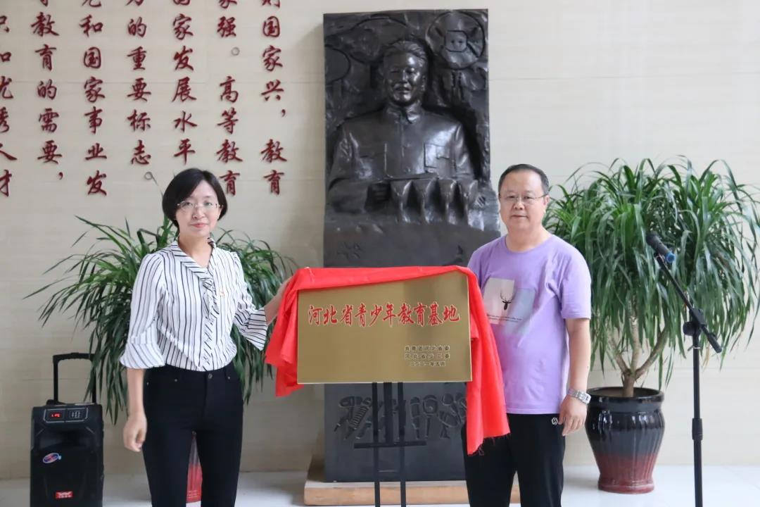 李文静和伟德党委宣传部部长赵振岗共同为河北省青少年教育基地揭牌。