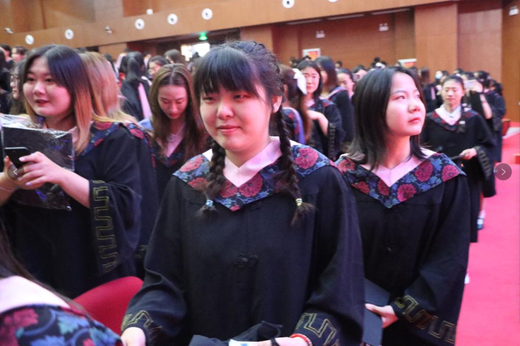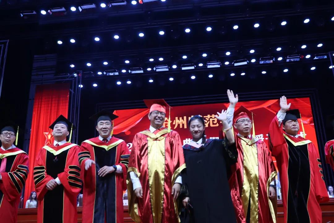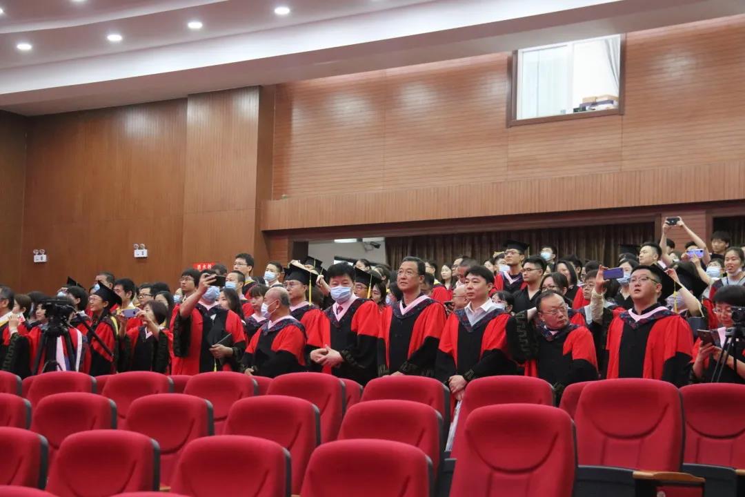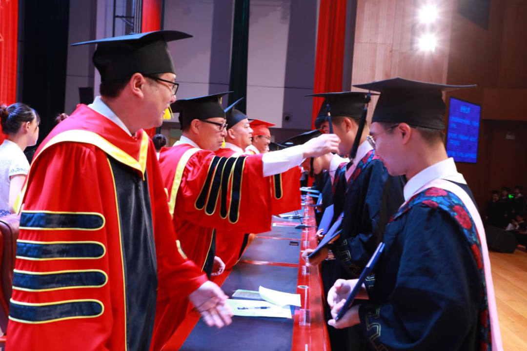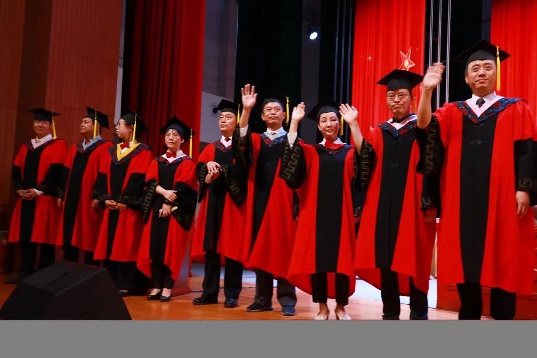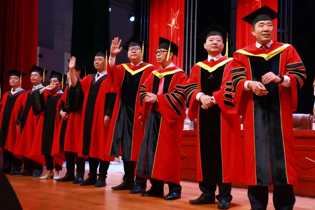 校领导们起身为六组毕业生代表一一正冠扶苏,颁发学位证书。这个神圣庄严的瞬间,点燃了毕业高潮!