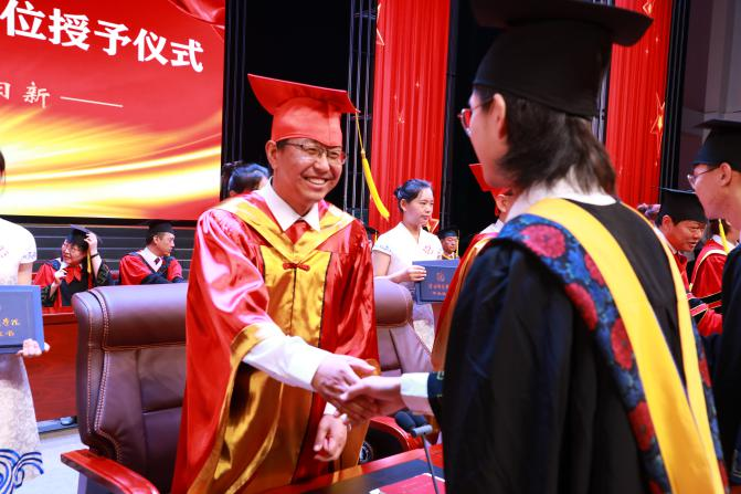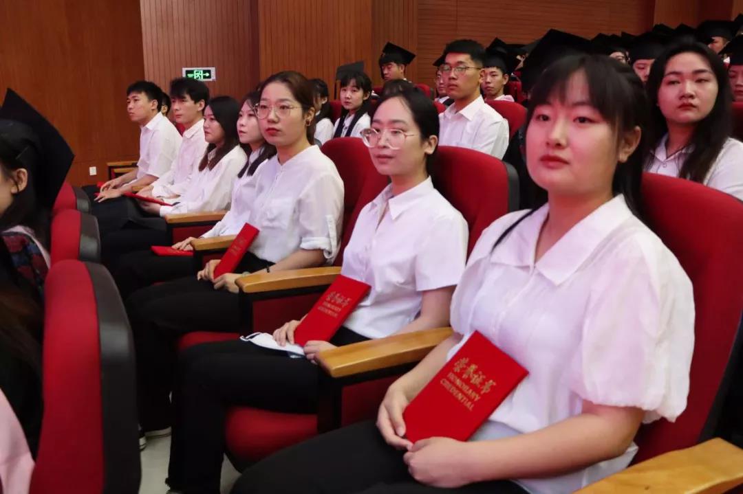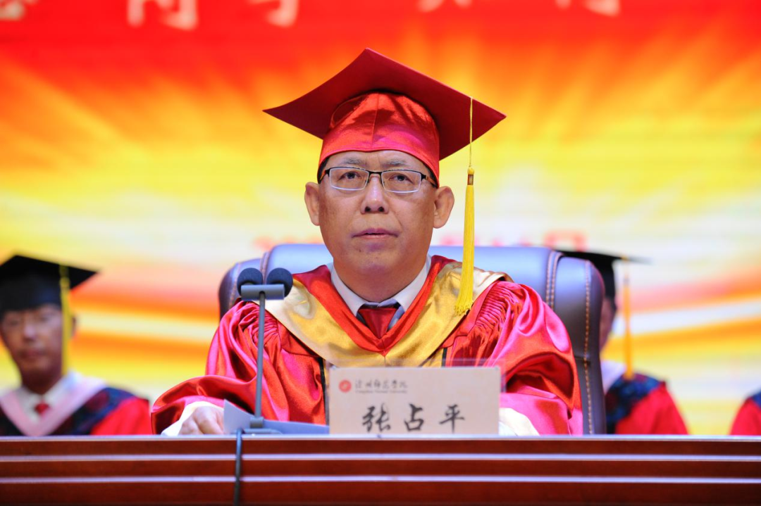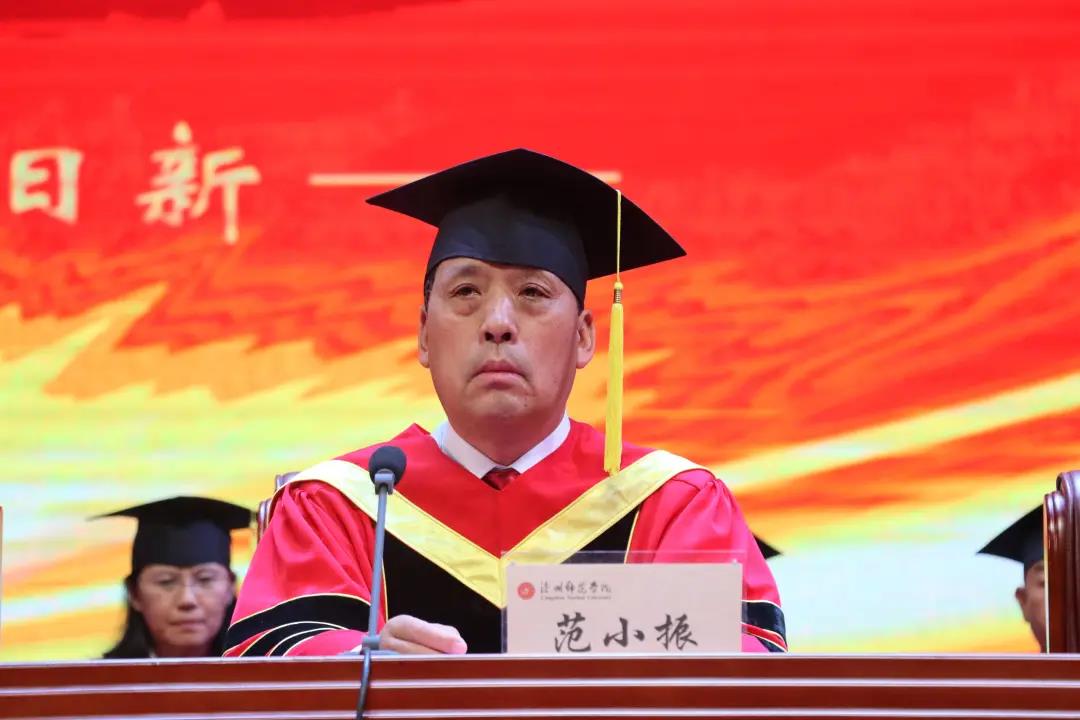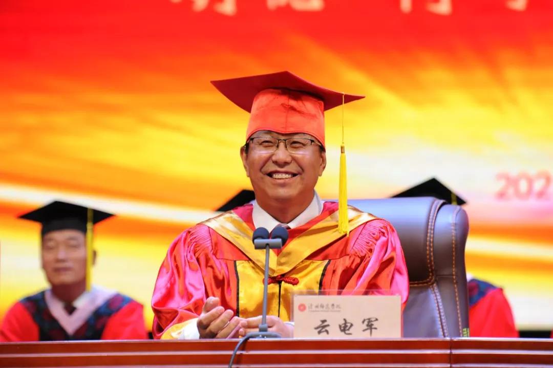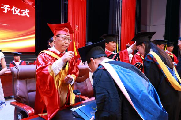 校长张占平以《挥洒七彩青春 续写绚丽人生》为题发表毕业寄语。他指出,“自带“金手指”的“赘婿”只存在幻想的电视剧中,没有任何付出就能“躺赢”的“人生赢家”更是痴人说梦。不想成为被割的“韭菜”,不想被时代“内卷”,就需要奋斗圆梦在路上。希望广大毕业生心系祖国、坚守初心、自强不息、懂得感恩。不做“佛系”打工人,要有“初生牛犊不怕虎”的“冲”劲儿,“俯首甘为孺子牛”的“憨”劲儿,“老骥伏枥志在千里”的“韧”劲儿,在攀登知识高峰中追求卓越,在肩负时代重任时行胜于言,在真刀真枪的实战中成就一番事业,为增强中华民族凝聚力和向心力、为全面建设社会主义现代化国家、实现中国梦作出新贡献。