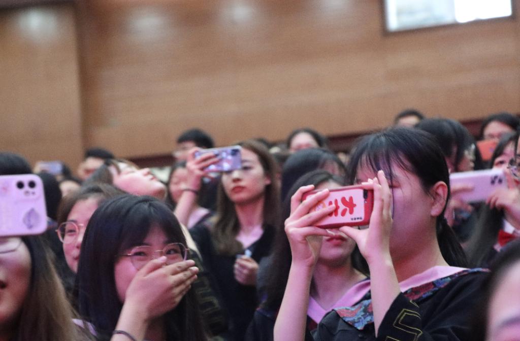 物理与信息工程学院院长郭玉秀代表教师送上祝福:有缘成为一家人,注定相伴前行;有梦就要去坚守,无论成功与否;有情才值得回忆,必将温暖余生。