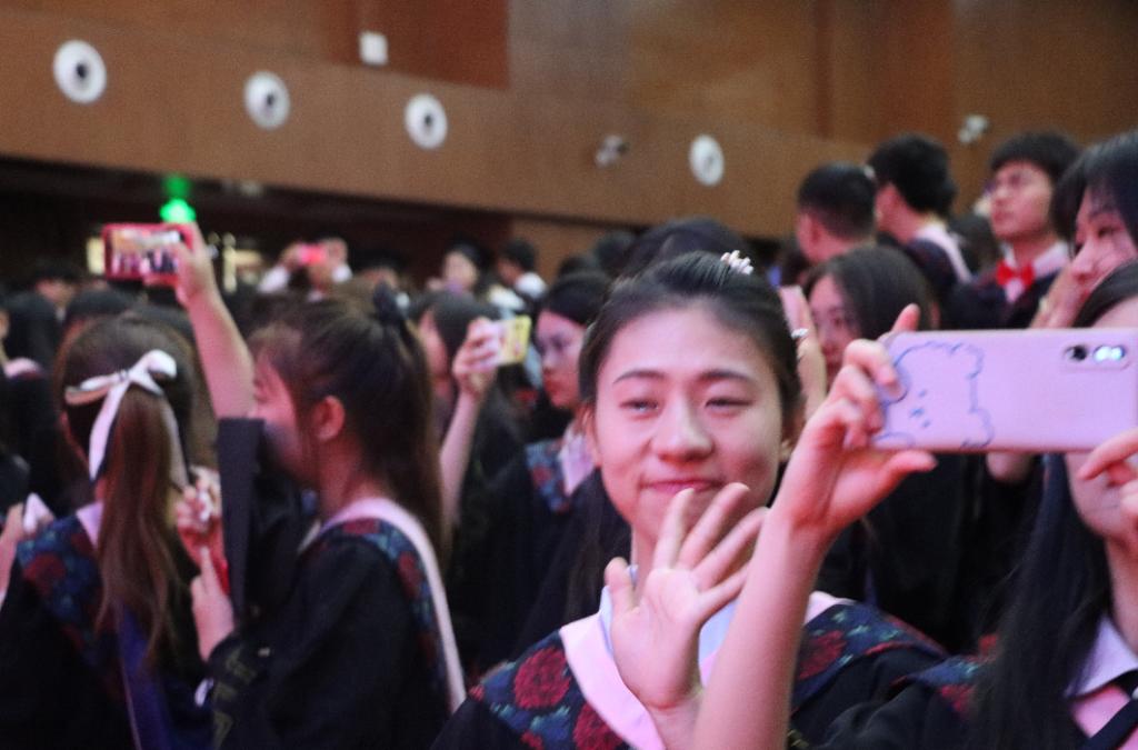 校党委书记云电军在临别赠言中深情嘱托毕业生:立大志、明大德、成大才、担大任,站在人类命运共同体的角度,用国际视野和世界眼光去思考判断时代发展与社会需求。广大毕业生作为开启全面建设社会主义现代化国家新征程的新生力量,要认真汲取习近平总书记“不忘初心,砥砺前行”的精神力量,坚持终身学习,练就过硬本领,掌握真才实学,牢记创新创造,不断提高与事业要求、时代发展、世界变化相适应的素质与能力,努力成为可堪大用、能担重任的栋梁之才。用纯正的“师院范儿”出色演绎属于你们每个人的“C位”人生!