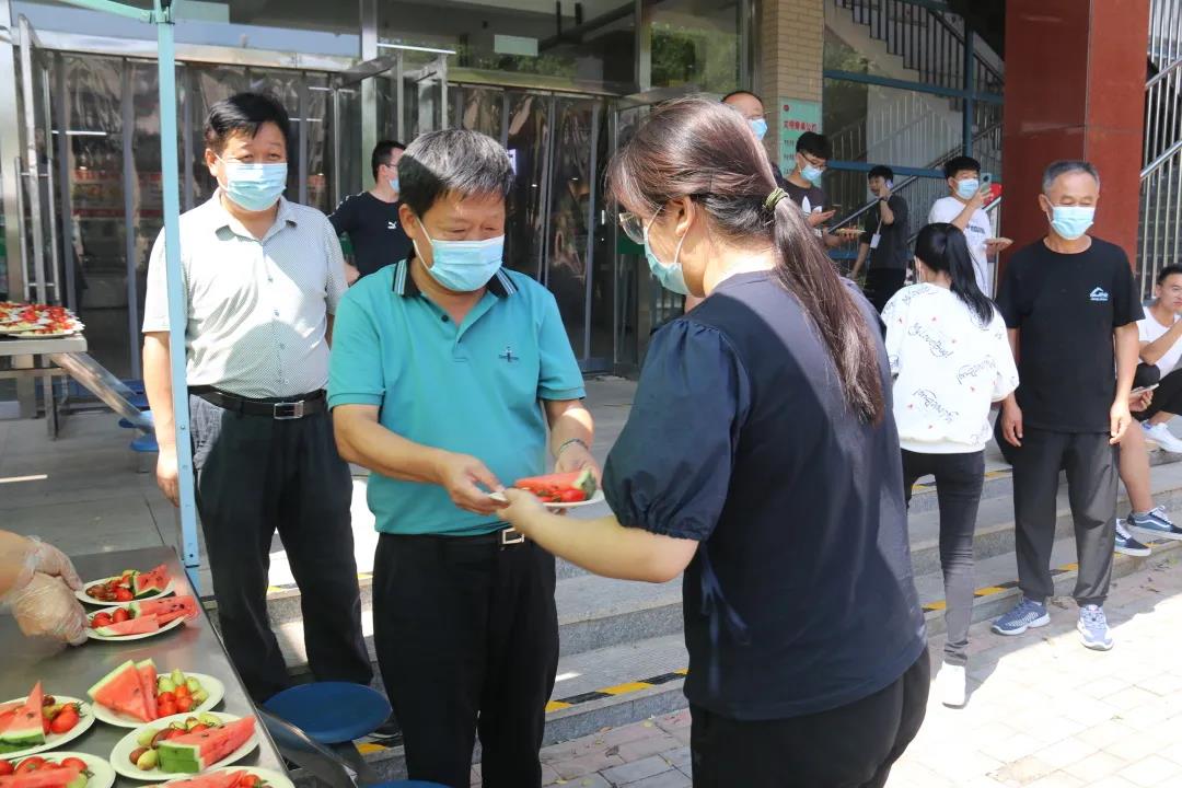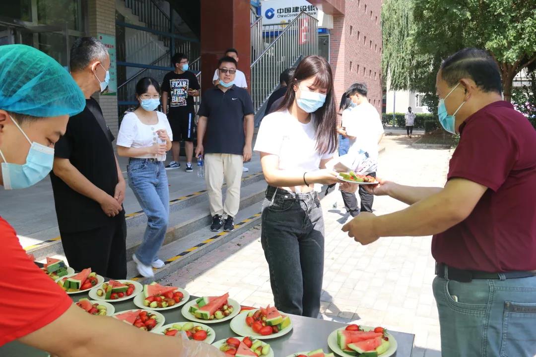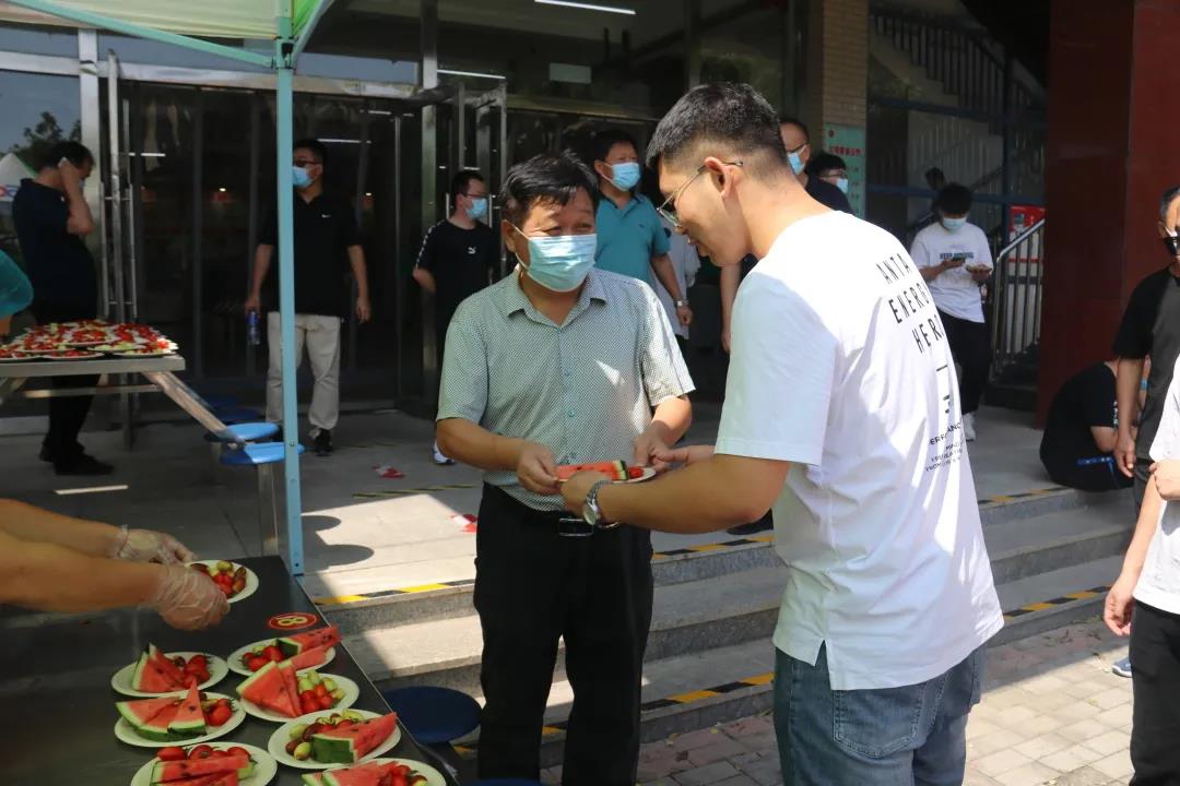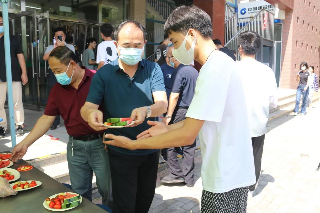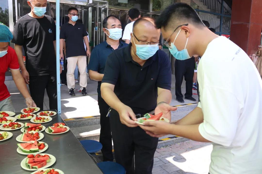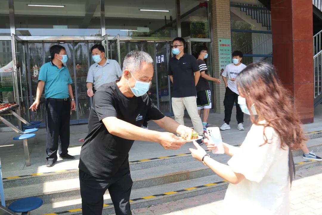 “欢迎同学们返校!”“欢迎你们回家!”“母校欢迎同学们!”……党委副书记姜忠明,后勤服务中心、学生处的领导老师,食堂工作人员们一起将一盘盘满载母校爱意的水果拼盘送到同学们手中,亲切的话语、温暖的笑容,师院学子又一次感受到了母校的关爱。