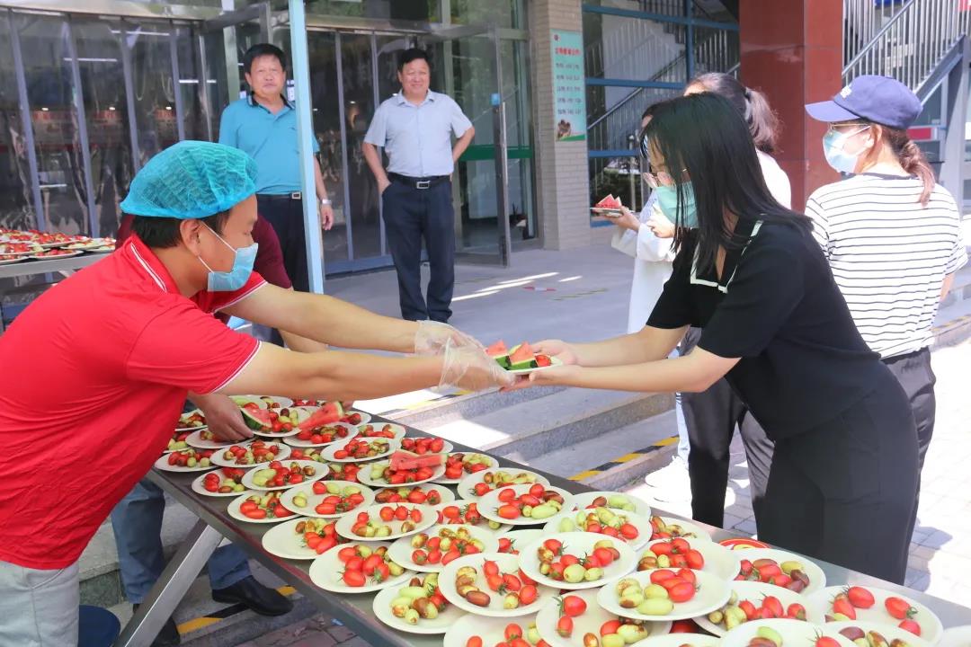 后勤服务中心党支部书记孙宏超介绍说,西瓜代表十全十美、万事圆满,西红柿寓意红红火火、万“柿”如意,脆枣象征着甜甜蜜蜜、天天开心,学校欢迎同学们回家,也祝愿同学们在新学年生活、学习事事顺利。