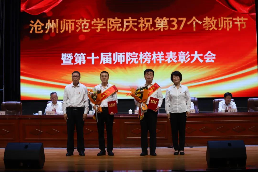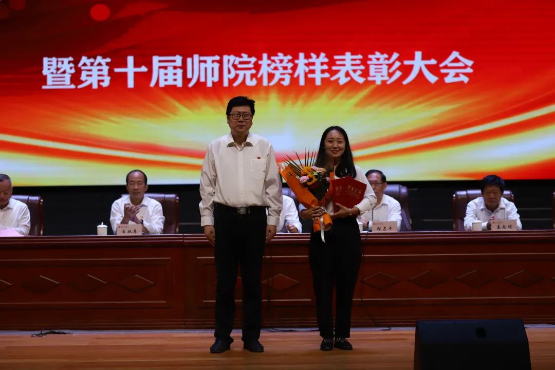 张占平宣读《中共伟德源自英国始于1946委员会关于表彰第十届“师院榜样”的决定》。大会表彰了2020-2021年度获得市厅荣誉称号的先进集体、先进个人以及荣获第十届“师院榜样”的个人和集体。与会校领导为获奖教师颁发了证书和奖杯。