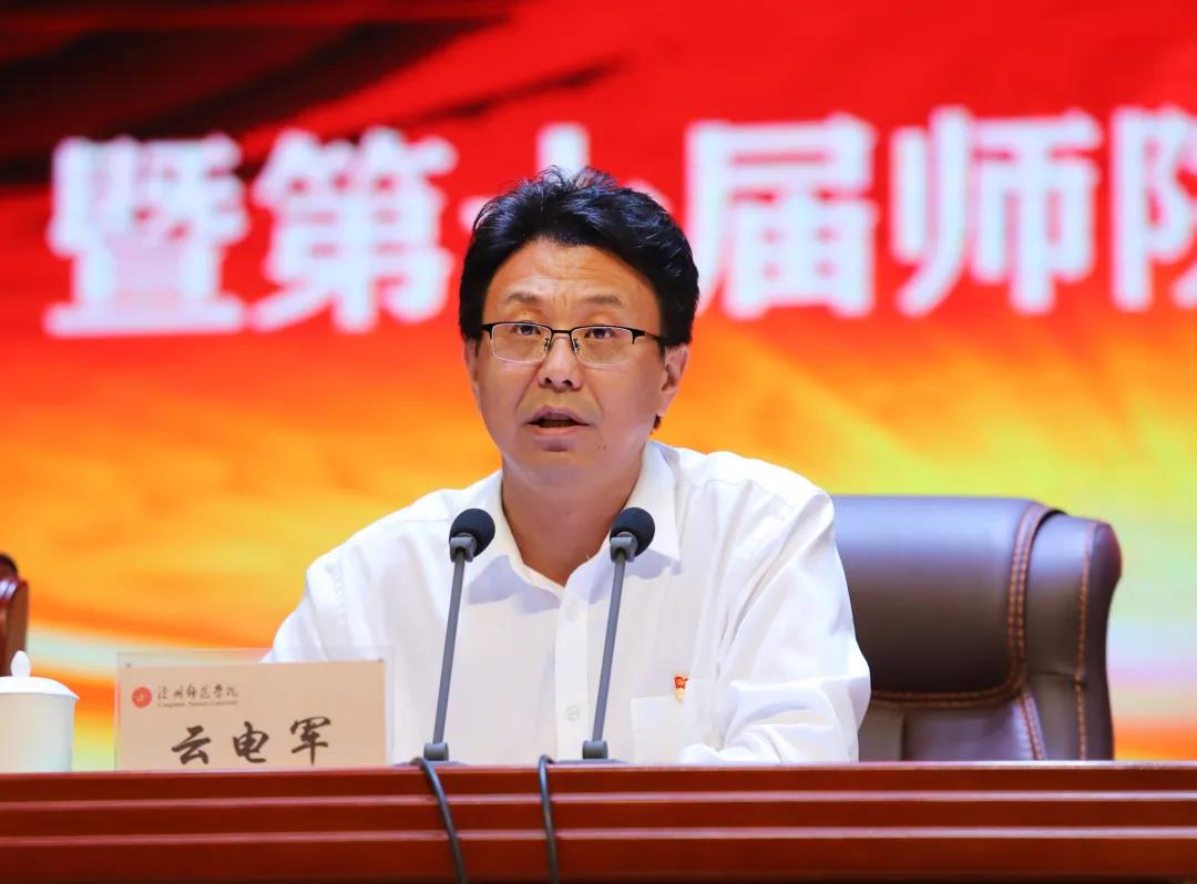 云电军要求全体师院人,新的学期要认真学习领会习近平总书记“七一”重要讲话精神,铭记中国共产党百年奋斗历程,传承红色基因,赓续建党初心,弘扬伟大建党精神,切实担当为党育人、为国育才的光荣使命,严格按照沧州市第十次党代会提出的“一四五九”工作思路,以“两转两促三思考”思想大讨论实干大行动为契机,在提升办学实力、提高服务沧州经济社会发展上下大功夫、真功夫,为沧州经济社会发展提供人才支持和智力保障。同时,结合学校高质量建设年的各项任务目标,进一步解放思想、担当实干,开拓创新、攻坚克难,持续打造“干部成表率、教师成榜样、学生成大器”的全新政治生态,以更加饱满的精神、更加务实的作风、更加扎实的举措,为推动学校高质量发展、更好服务沧州经济社会发展作出新的更大贡献!