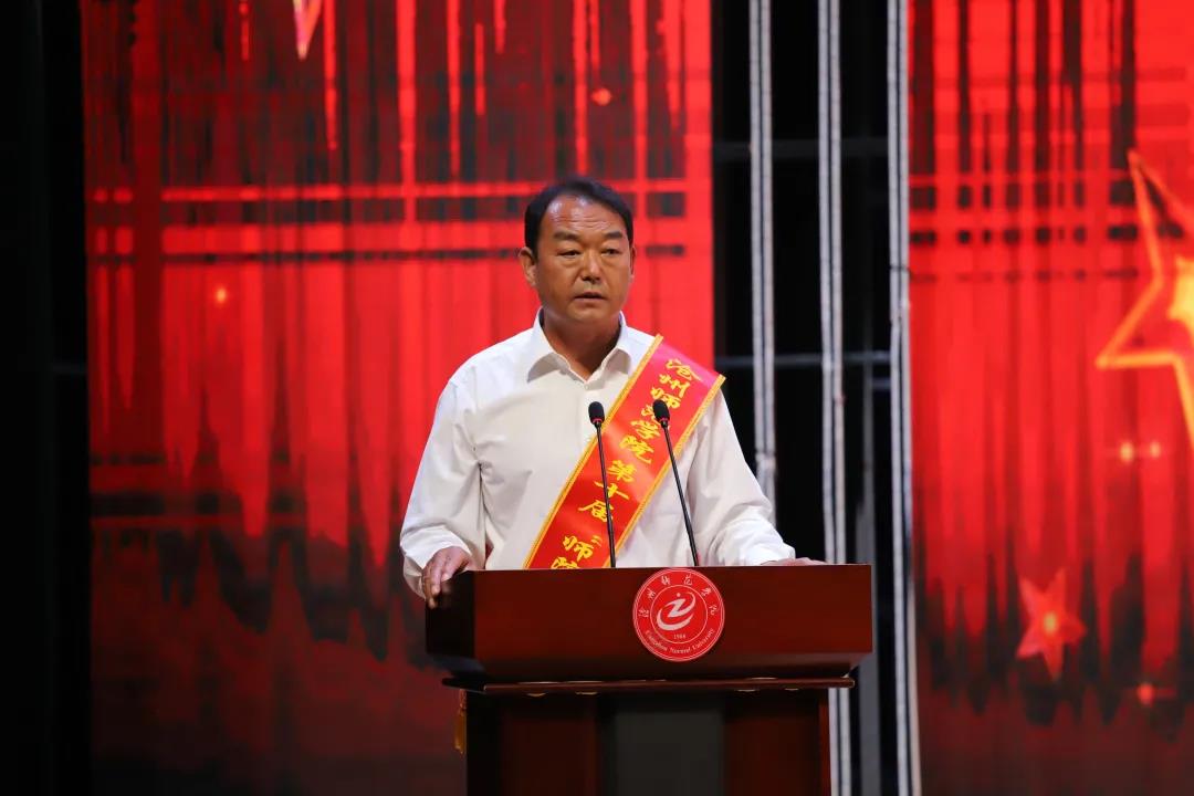 云电军代表学校党政领导向老师们致以节日的问候,对获得第十届师院榜样的各位老师表示衷心的祝贺。他指出,今年是中国共产党成立100周年,也是“十四五”开局之年。在党的坚强领导下,广大教师仁爱奉献、辛勤耕耘,倾力培养德智体美劳全面发展的社会主义建设者和接班人,为加快推进教育现代化、办好人民满意的教育提供了强有力的人才支撑、智力支撑和创新支撑。