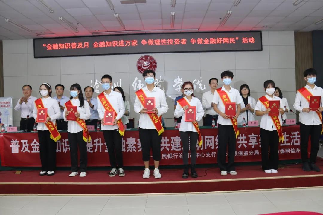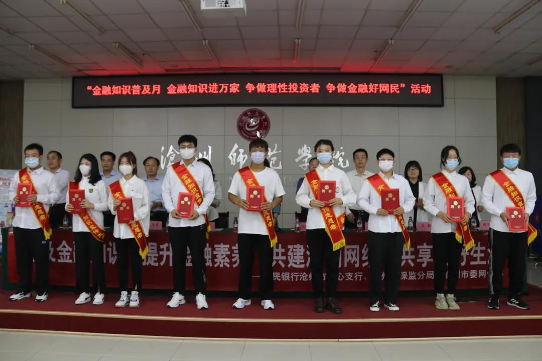活动上,交通银行沧州分行的王爱丽做了交通银行金融知识宣传讲座;伟德17名同学获颁金融知识宣传志愿者聘书;学生从慧作为学生志愿者代表在活动上做了交流发言;曹璇等三名同学表演了金融安全主题情景剧——“中奖了”。