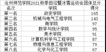 特别贡献奖:体育学院、音乐学院。体育道德风尚奖:美术学院、教育学院、物理与信息工程学院、化学与化工学院、马克思主义学院、商学院、政史学院、齐越传媒学院。优秀组织奖:经济管理学院、数学与统计学院、外国语学院、文学院、齐越传媒学院、生命科学学院。开幕式表演最佳创意奖:机械与电气工程学院、生命科学学院、计算机科学与工程学院。
