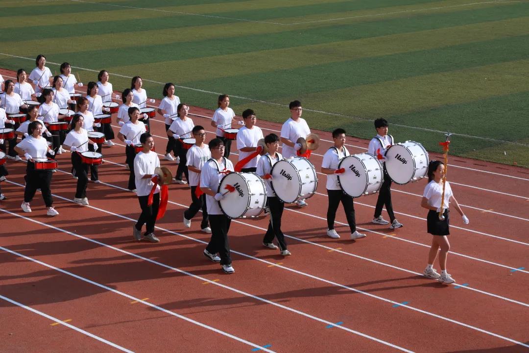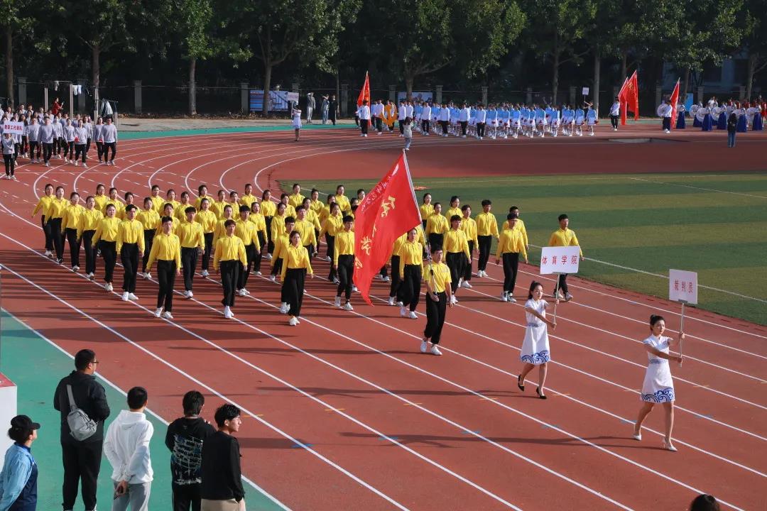 国旗方队、校旗方队、会旗方队、鼓乐队、彩旗方队、裁判员队、教职工代表队和各学院方队迈着整齐划一的步伐依次走来。精心设计的列队表演、各具特色的队服标语,绽放了活力,展现了风采。“请党放心,强国有我”的青春誓言响彻师院。