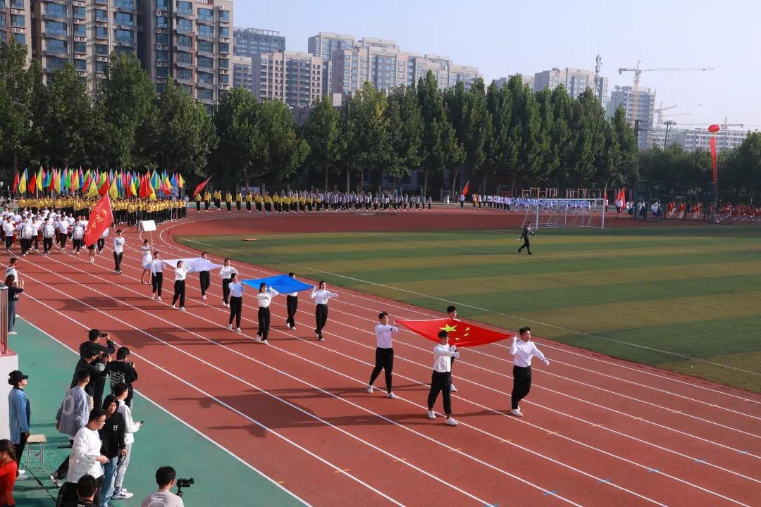 上午7:30,旭日东升,天公作美,持续多日的秋雨在运动会首个比赛日开始前及时停下。师生们热情高涨、精神饱满。主席台上,校领导正装出席,高度重视。观众台上,师生手持国旗,欢欣鼓舞;田径场上,运动健儿们蓄势待发,志在必得;赛场旁,志愿者们认真筹备,有条不紊。
