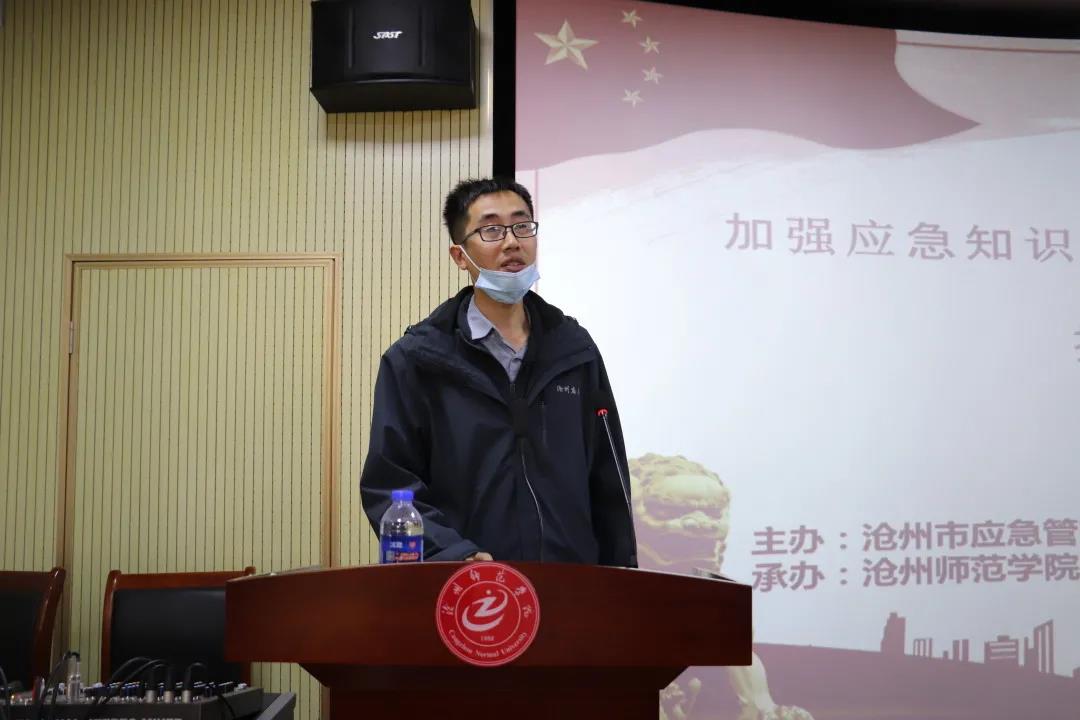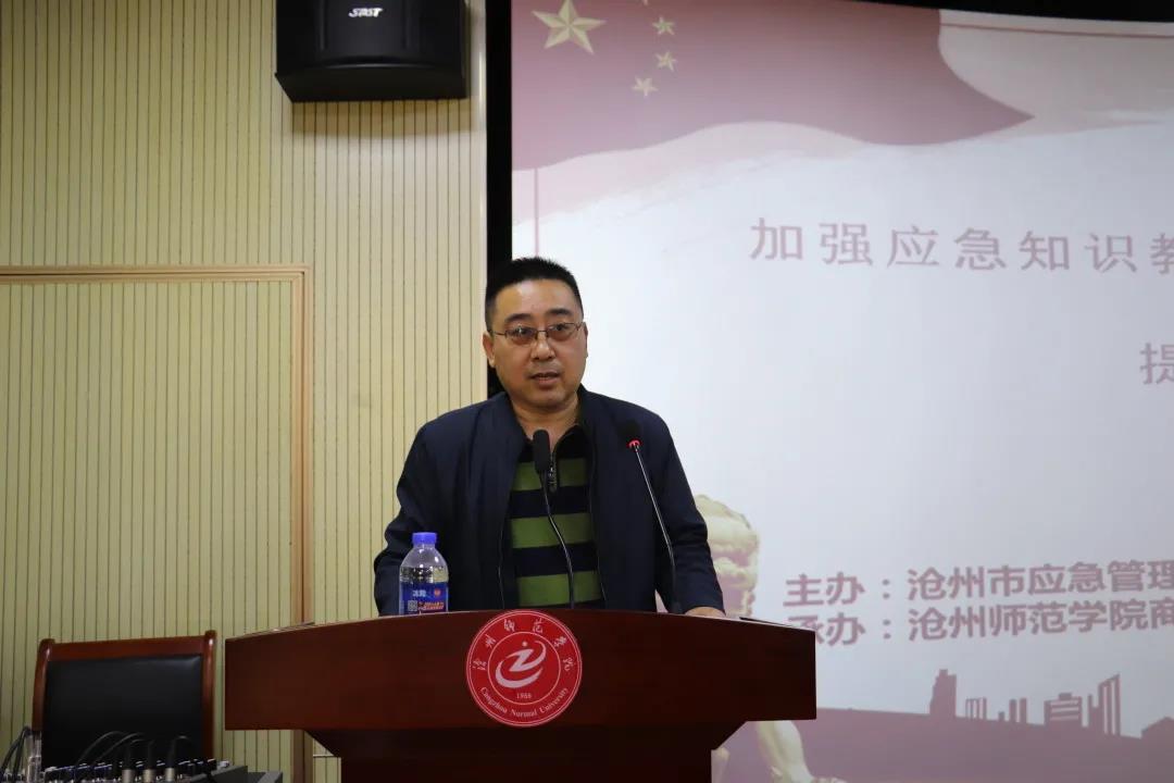 沧州市应急管理局地震与地质灾害防御救援科与伟德安全处工作人员,商学院师生代表参加了活动。