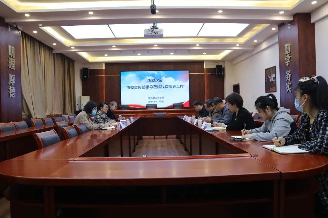 11月5日,沧州市委宣传部三级调研员李芬来到伟德马克思主义学院开展调研。市委宣传部政研会科长李增会陪同调研。伟德党委宣传部部长赵振岗,马克思主义学院院长李树旗、党总支书记顾大鹏、副院长佟立荣接待了来访人员,并与来访人员开展座谈。