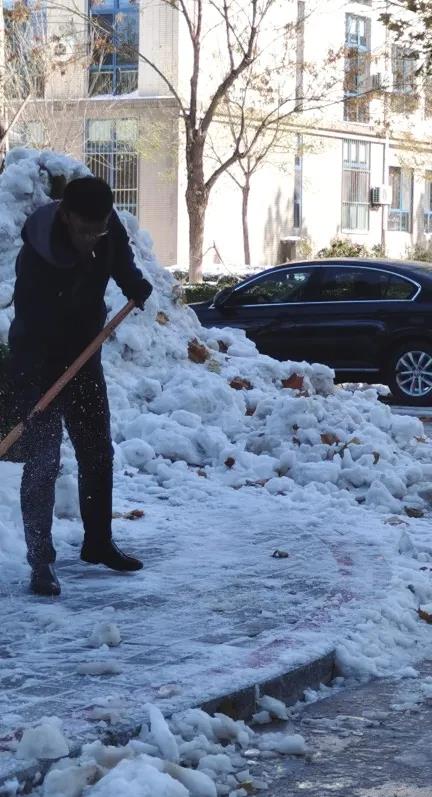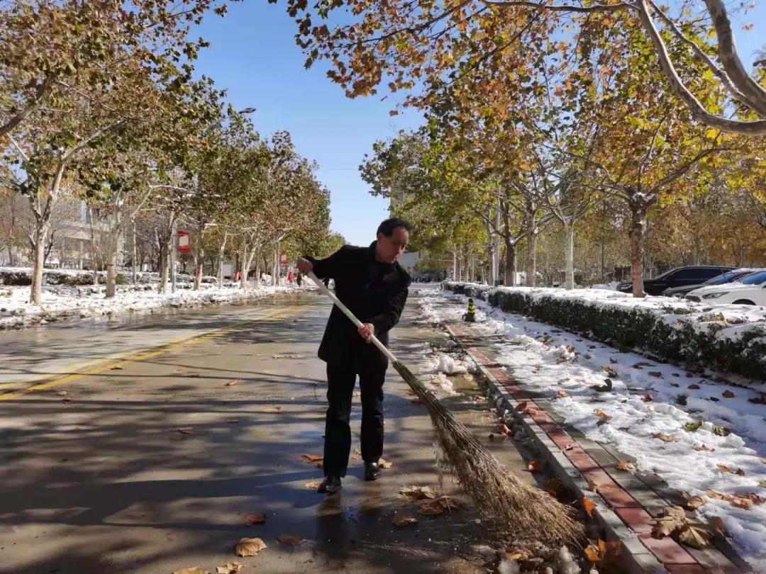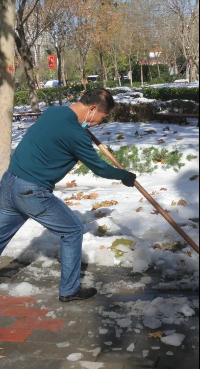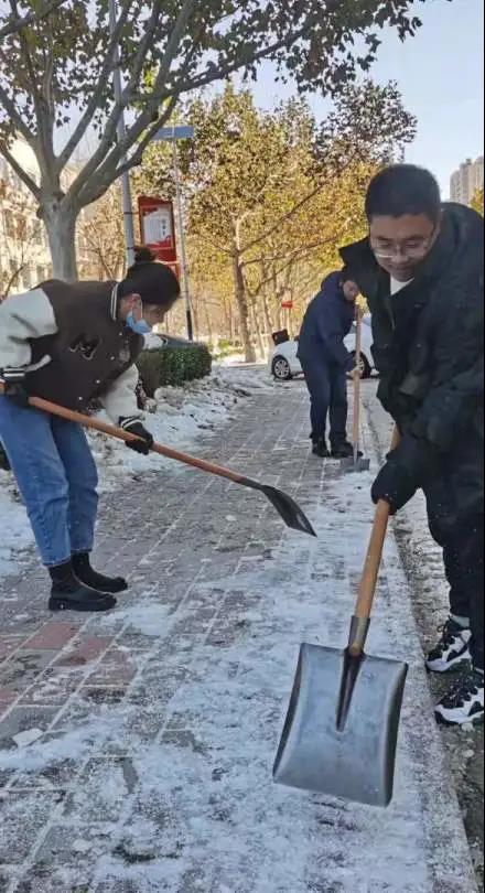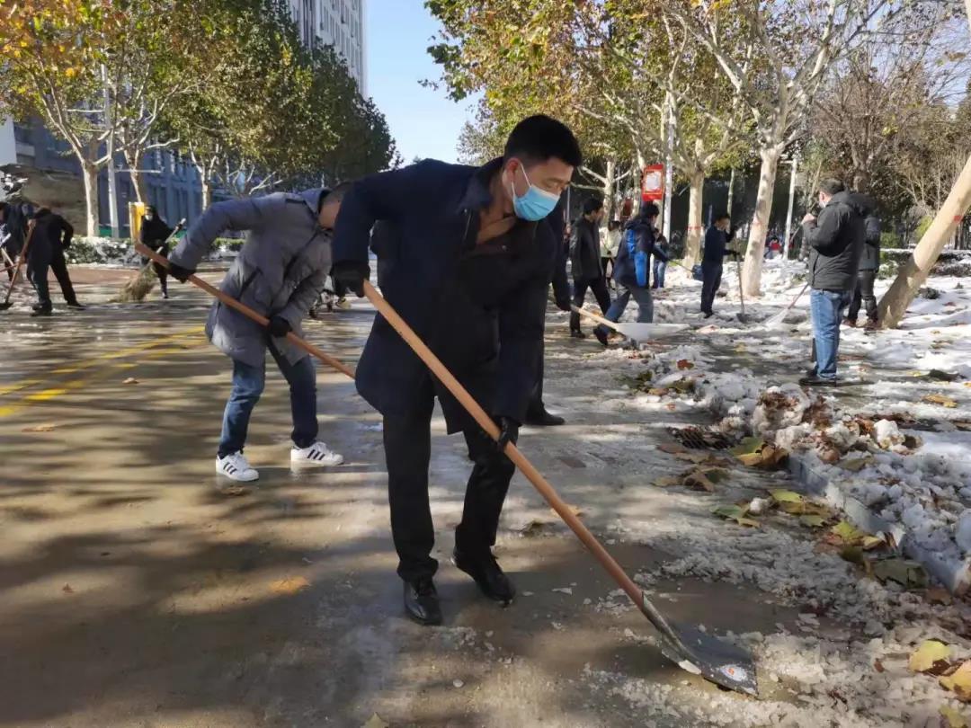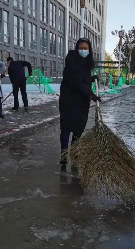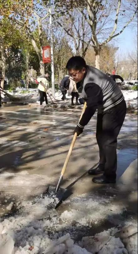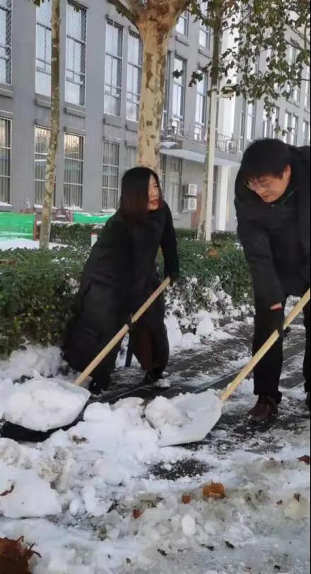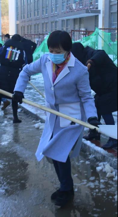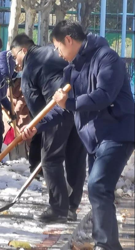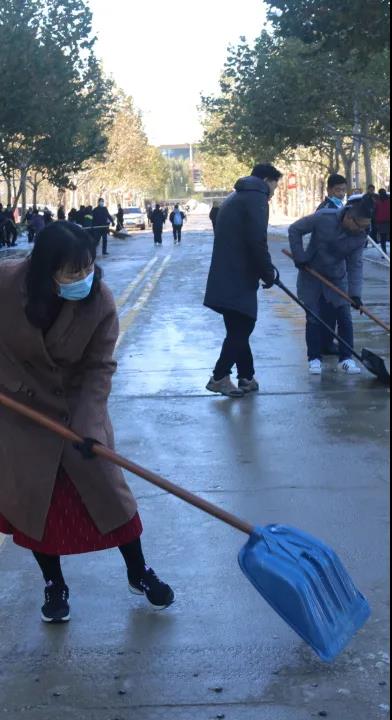 你看,领导们、老师们、同学们精神饱满、干劲十足、配合默契。额头上的汗水和劳动中的欢笑交相辉映,构成了银装素裹校园里最美的风景。一起来点赞“最美劳动者”身影吧!