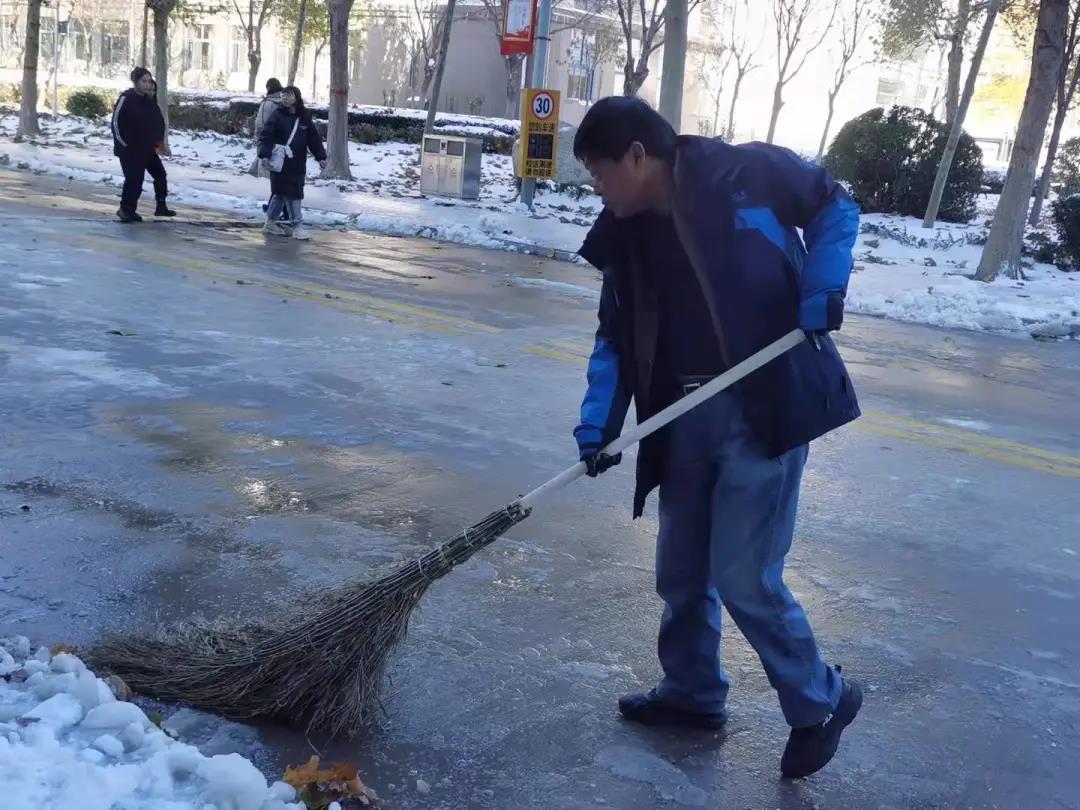 学校领导、教职工、同学们和安保、保洁人员全员出动,组成“最强除冰”队伍,大家紧密合作,齐心协力,热火朝天地投入到清理工作中。人心齐,冰雪移。经过一上午的集中清理,主路和教学楼、餐厅、宿舍通道等区域的冰雪均已清理完毕,消除了安全隐患,师生安全出行再无忧!“孜孜以求、团结奉献、精益求精、敢于胜利”的师院精神和劳动付出的快乐在师生中进一步彰显。