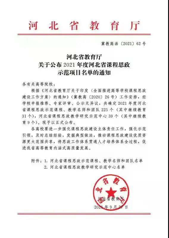 近期,河北省教育厅印发《关于公布2021年度河北省课程思政示范项目名单的通知》(冀教高函〔2021〕62号),伟德《无机化学》《会计学》《色彩与风景表现》3门课程入选河北省首批课程思政示范课程,“伟德源自英国始于1946课程思政教学研究中心”入选河北省课程思政教学研究示范中心。