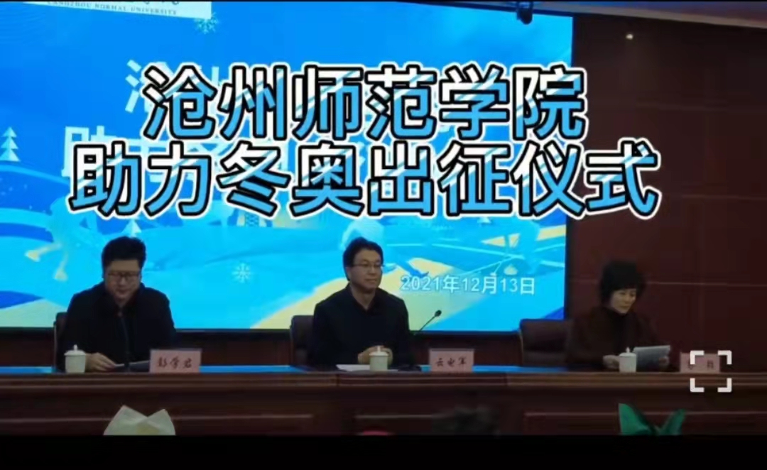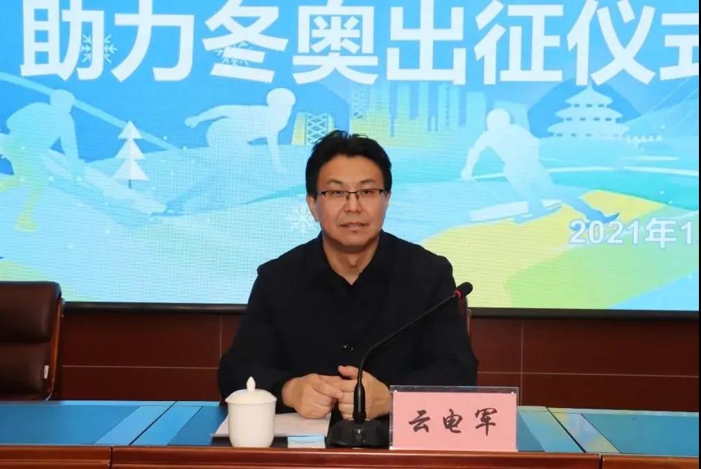 云电军为助力冬奥代表队授旗。云电军温情嘱托同学们,此次参加冬奥服务的每一位同学都要以习近平新时代中国特色社会主义思想为指引,不负嘱托,不辱使命,发挥青年优势,释放青春激情,向河北展现好沧州,向中国展现好河北,向世界展现好中国,以实际行动为服务保障本届盛会贡献青春力量!