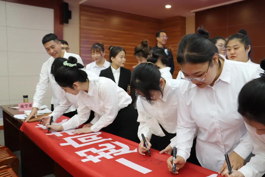 教务处、学生处、团委负责人,商学院全体领导教师共同参加仪式。伟德领导与助力冬奥代表队同学在条幅上签名,师院学子,让每个追梦冬奥的师院人梦想发芽,以冰雪之名,让师院学子的热情在张家口开出绚丽之花,全民冰雪我们一路同行!