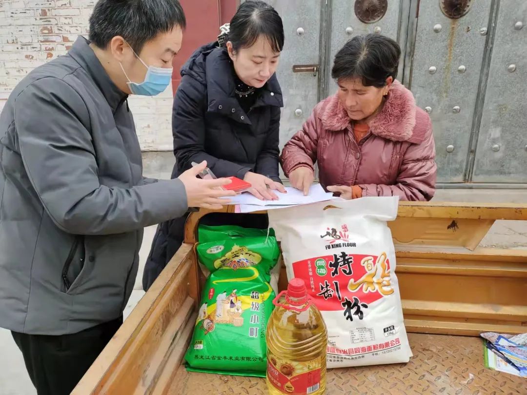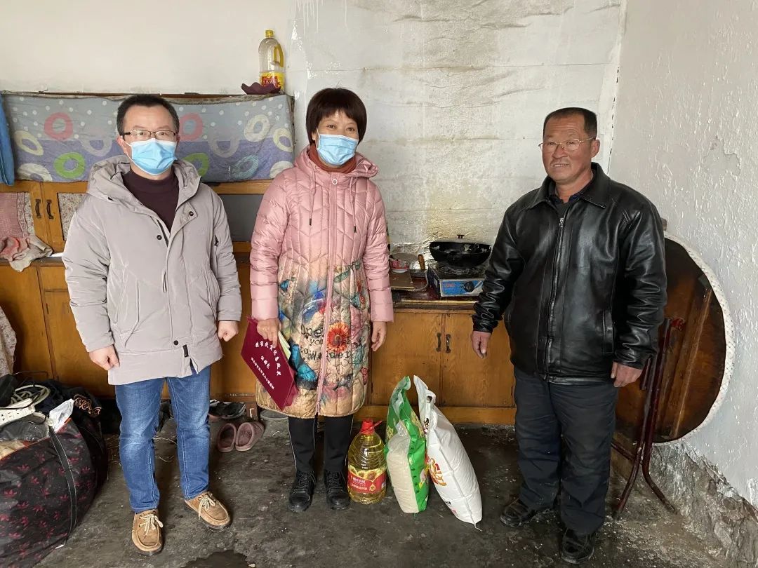 1月25日,新春佳节来临之际,伟德驻孟村县牛进庄乡东赵河村工作队和学校帮扶责任人入户走访,为帮扶群众送上食用油、面粉、大米等生活物资,也带去了党的关怀和问候。