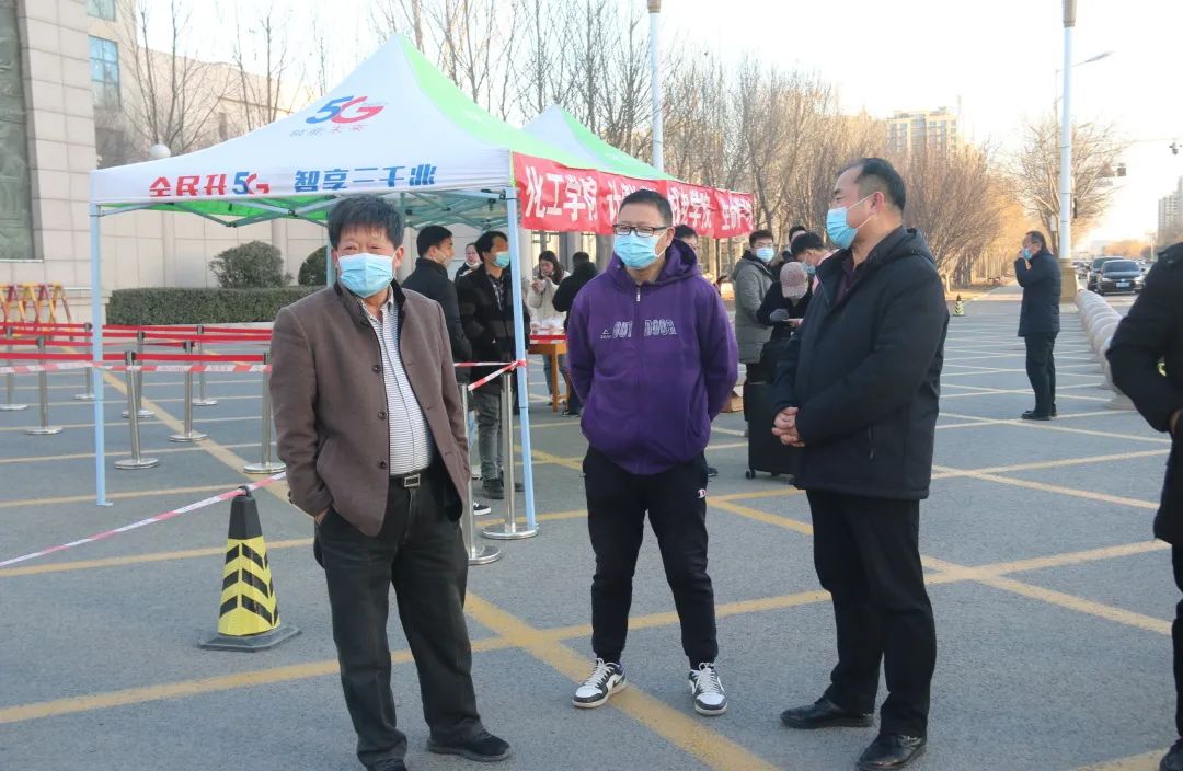 清晨六点半,在校领导的带领下,各学院以及职能处室负责学生入校工作的工作人员就走上了岗位。从校门口到宿舍门外,引领人员握紧了纸笔和流程图,核酸检测人员握紧棉棒,保安师傅握紧测温枪,食堂阿姨握紧了打饭的勺子,协助学生搬运行李的人员握紧了三轮车把,他们都在各自的岗位上等待着学生们的到来。虽然气温还很冷,但热情依然从他们口罩上方的眼睛里流淌出来。