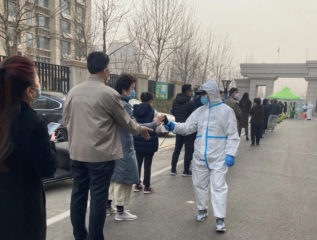 还有一部分教师志愿者协助社区工作人员和医务人员,进行核酸检测的现场秩序维持、登记信息等。