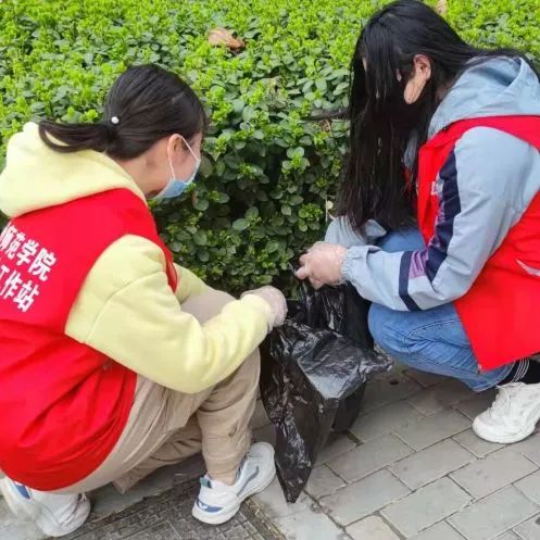 在这次活动中,志愿者们个个干劲十足,分工合作、密切配合。他们手提垃圾袋,不怕累、不怕脏,哪怕是藏在草丛里的一个烟头,一片纸屑也被一一清扫出来,装进了垃圾袋。经过一个多小时的劳动,志愿者们的手中都已“战果累累”,校园内的白色垃圾被清理干净,一眼望去整洁清爽。