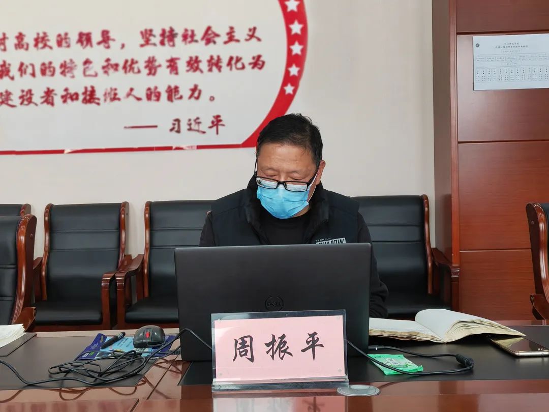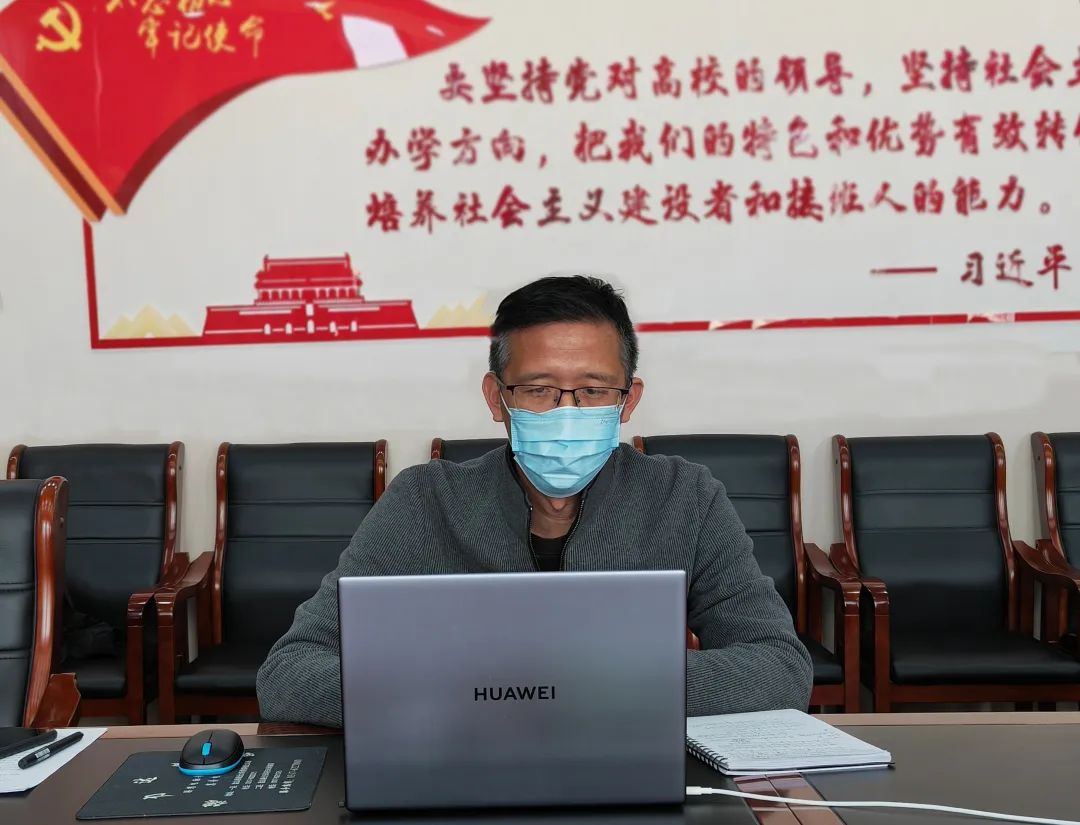 各学院院长、党总支书记,各部门负责人在各自办公室线上参加视频会议。