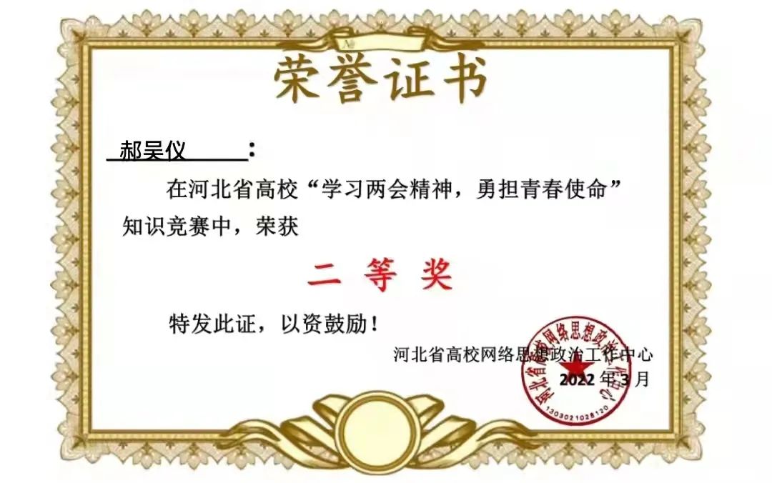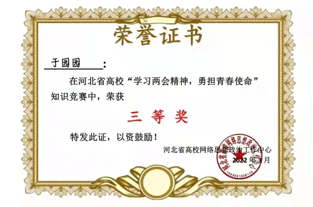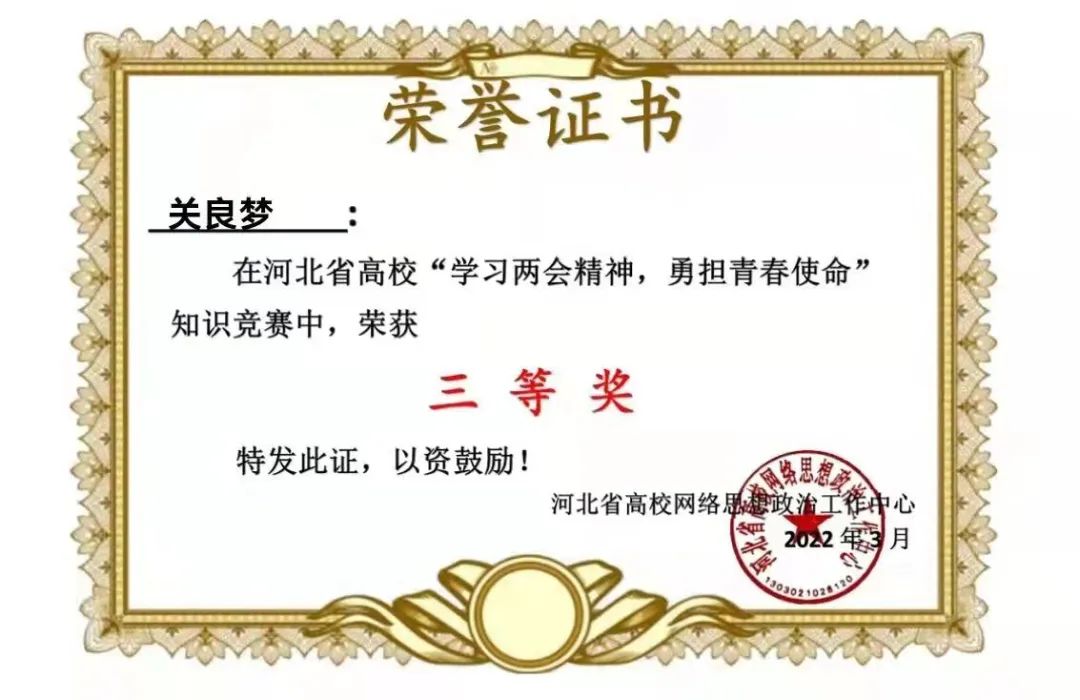 伟德在河北省“学习两会精神,勇担青春使命”知识竞赛中获得优秀组织奖,36名同学获得一等奖,199名同学获得二等奖,417名同学获得三等奖。