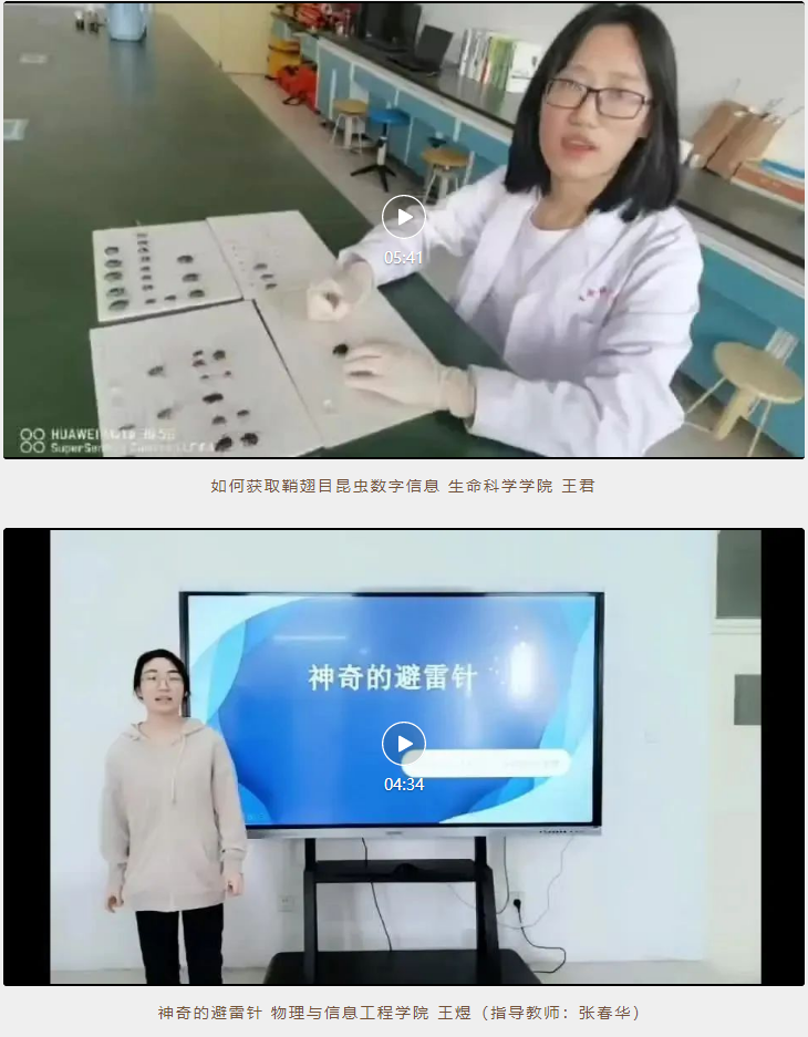 主办方还收到了由各学院师生自发组织录制的40余部科普视频,并重点选取了14部在校园官方平台发布展示。