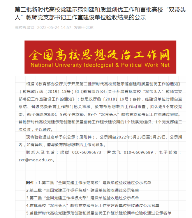 5月24日,教育部思想政治工作司公布了第二批“全国党建工作样板支部”培育创建单位验收结果。经支部对标自查总结、校党委审核、省教育工委把关复核、教育部思想政治工作司审查,伟德美术系党总支师生联合党支部通过验收。