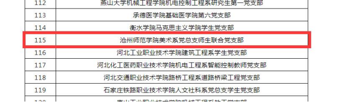 该党总支师生联合党支部自2019年入选教育部第二批新时代高校党建工作“双创”样板党支部培育建设单位以来,在校党委的正确领导下,支部深入学习贯彻习近平总书记关于高校党建工作的指示精神,以“七个有力”为统领,以“三化”建设为抓手,紧密结合美术专业师生特点,密实党建组织网络,创新“三会一课”形式,拓展党建阵地功能,形成了一套符合新时代艺术类专业特点的党建工作新思路、新模式。2021年7月,被授予“河北省先进基层党组织”。