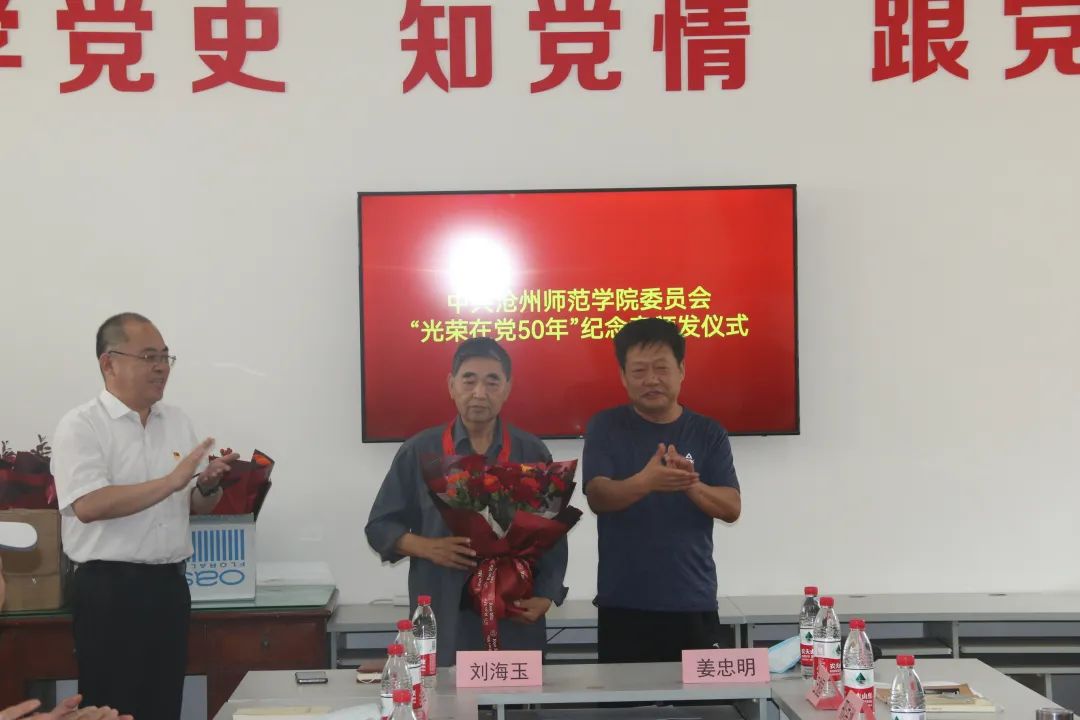 50年风华岁月,50年与党同行。姜忠明为党龄达到50年的老党员代表,颁发“光荣在党50年”纪念章,送上鲜花,并向获得纪念章的老党员们致以衷心的祝贺。姜忠明表示,一枚“光荣在党50年”纪念章,既是“礼赞章”,也是“奋进章”,既体现了党中央对老党员的关怀和激励,更铭刻着老党员们熠熠生辉的奋斗足迹和勇于担当的为民精神。