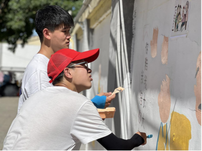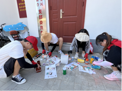 队员们通过前期了解当地产业和民俗文化,设计了独具风格的墙绘方案,并进行了多次练习,力争在活动中把最美的画作留在墙上。当日,大家分工协作,从构图、起形、调色、上色再到最后的精修,反复打磨每一处细节。原本普通的白墙换上了艳丽的新装,一幅幅反映社会主义核心价值观、孝老爱亲、移风易俗、美丽乡村、农耕文化等内涵丰富的生动画作扮靓了整个乡村。“文化墙”建设作为美丽乡村建设的一项重要内容,是提升村容村貌、促进乡风文明、展示乡村文化振兴的一个缩影。队员们以群众喜闻乐见的墙绘描绘广大群众的美好愿景,以通俗易懂的话语宣传乡村振兴政策,传播积极向上的精神文化,引导乡村把墙绘作为宣传载体,用艺术服务乡村振兴、助力文明城市创建。