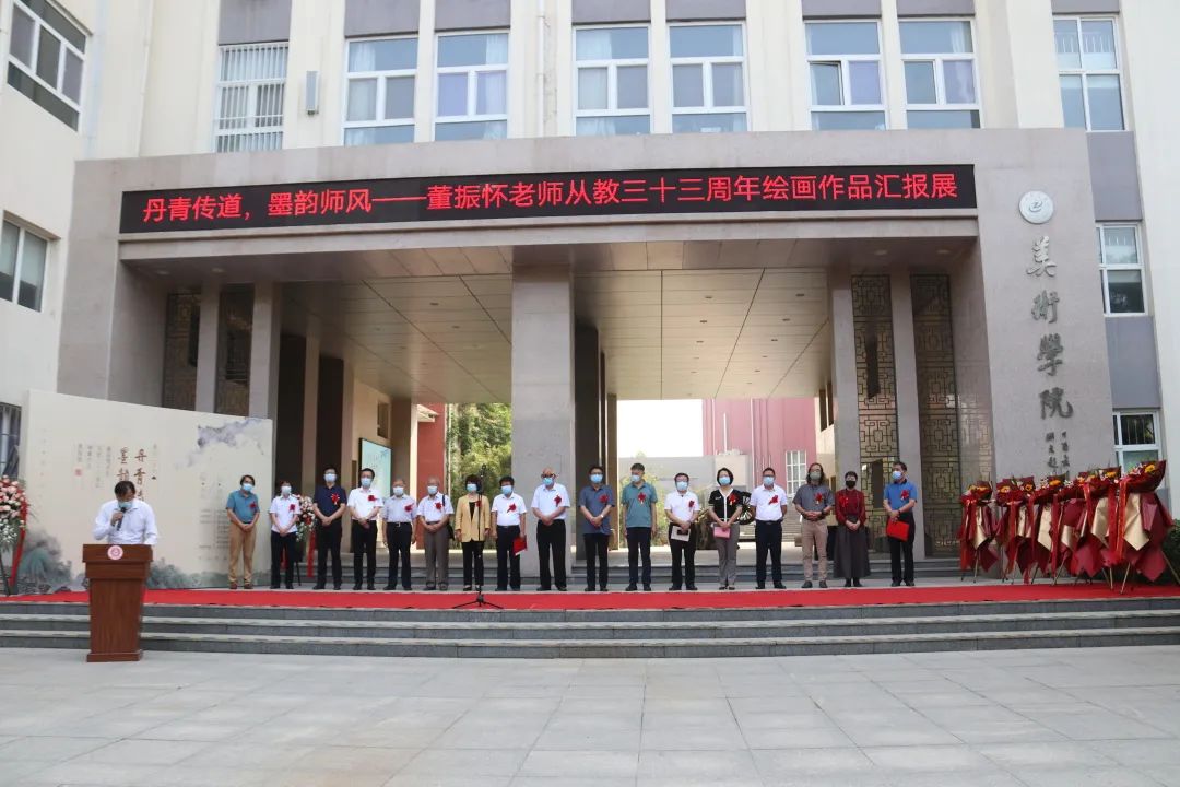 范小振在致辞中表示,董振怀老师用自己的艺术积淀与教育情怀,为广大师生提供一场精彩的艺术盛宴,也为洪昌美术馆粉刷了一抹亮丽的美育之蓝。此次画展既是一位老教师在教师节的汇报和献礼,是一次难得的艺术交流活动,也是伟德为迎接党的二十大胜利召开,凝心聚力,号召全体教师团结奋进,投入到立德树人光荣使命的战斗动员。希望广大青年教师和有志于从事教育事业的同学们,向董振怀老师等无数名优秀的老教师学习,热爱讲台、精艺载道、心怀感恩、不断探索,担当起光荣的时代使命。