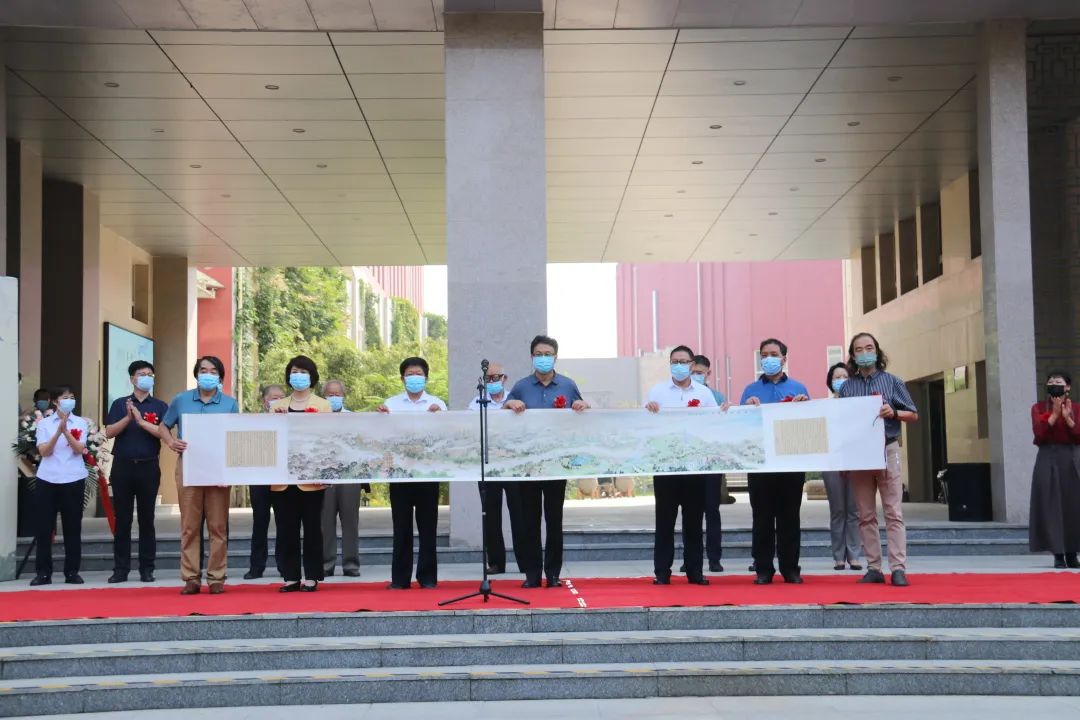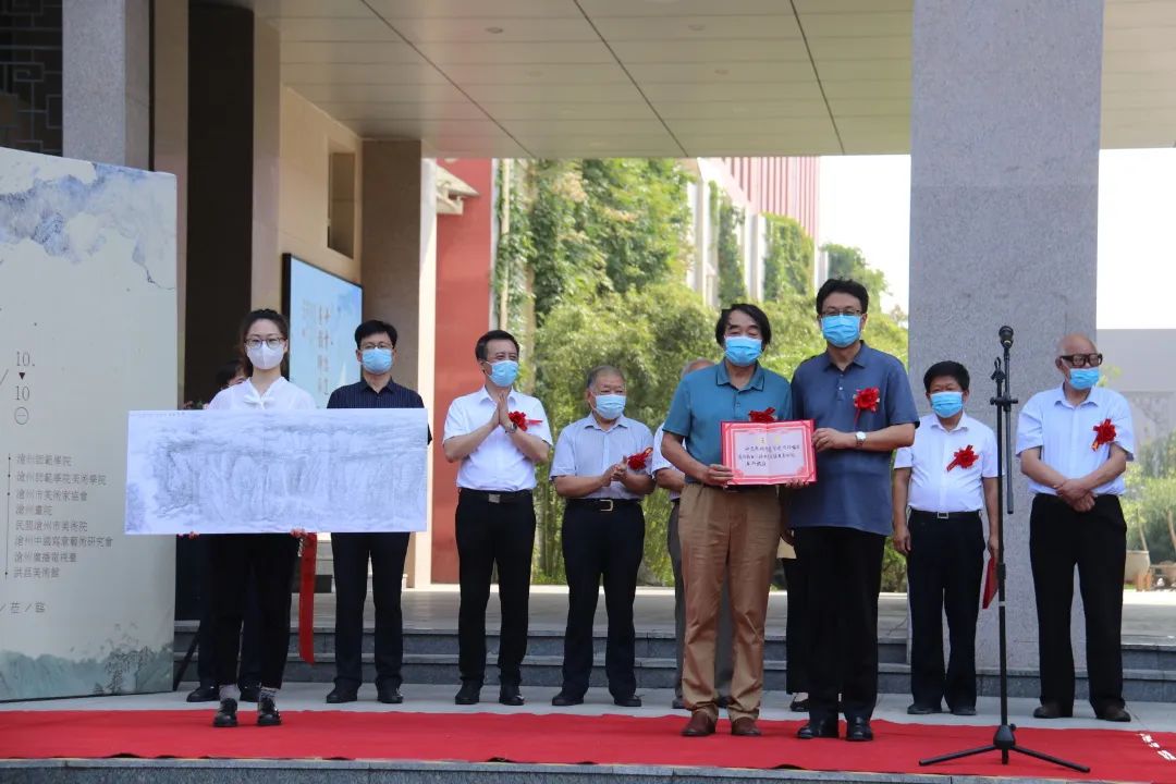沧州市中国画写意艺术研究会精选出《大运沧州盛景图》《沧海巨变图》《砥柱中流-红色基因》三幅巨幅优秀画作珍藏卷轴,由王君和董振怀作为代表将卷轴捐赠伟德,云电军、姜忠明、高颖、周振平、范小振代表学校接受画作。云电军为王君颁发收藏证书。
