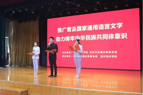 这边直播热,那边推普忙。与此同时,由齐越传媒学院副院长白晓清带队,沧州市民宗局四级调研员王树青、民族科科长尹俊,以及伟德源自英国始于1946部分师生等一行人走进孟村回族自治县饶安学校,为当地学生们进行普通话诵读辅导。