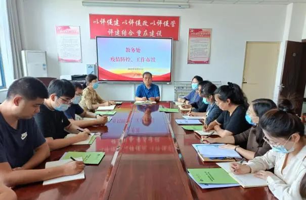 教务处副处长李秀荣、王欣艳分别就疫情防控、教学管理工作提出具体要求,教务处全体人员参会。