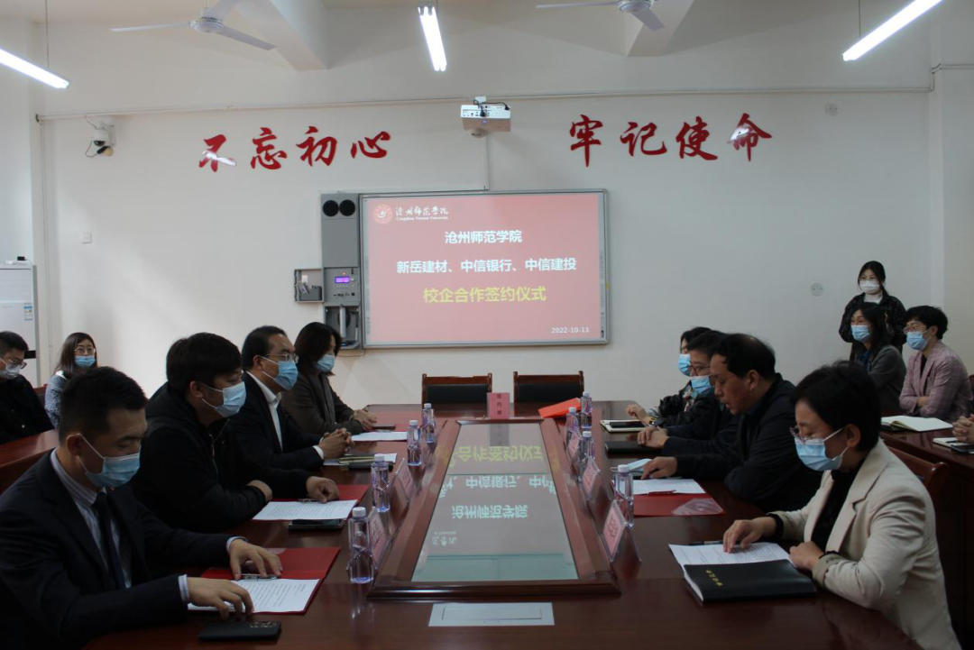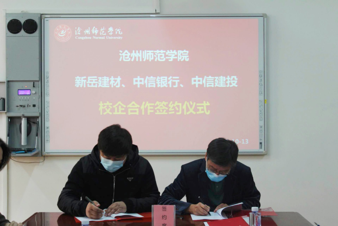 为深入推进校企合作,10月13日上午,经济管理学院在齐越楼一楼会议室与廊坊新岳建材有限公司、中信银行沧州分行、中信建投沧州分公司举行校企合作签约仪式。伟德党委常委、副校长范小振,廊坊新岳建材有限公司总经理宁天源,中信银行沧州分行副行长熊立忠,中信银行沧州支行行长韩英梅,沧州中信建投证券总经理杨士勇出席活动。经济管理学院领导班子及师生代表参加活动。