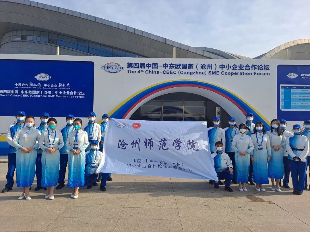 白上衣,蓝裤子,蓝白相间的旗袍,在12月15-16日举行的第四届中国-中东欧国家(沧州)中小企业合作论坛现场, 有这样一群穿着清新,笑容灿烂的青年志愿者,大家亲切地称他们为“蓝精灵”,这就是来自师院的青年志愿者们。