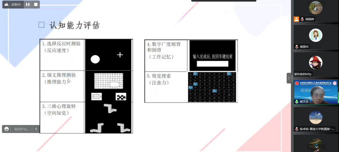 北京大学第一医院儿科王静敏教授、暨南大学附属第一医院脑科医院副院长陈卓铭教授、加拿大温哥华总医院听力室主任齐力教授,首都儿科研究所程大志副研究员、中南大学湘雅二医院康复医学科神经康复专科王如蜜副主任做特邀报告。专家们聚焦言语-语言、认知、沟通、听力等领域的国际前沿问题,分享了最新研究进展和康复技术。