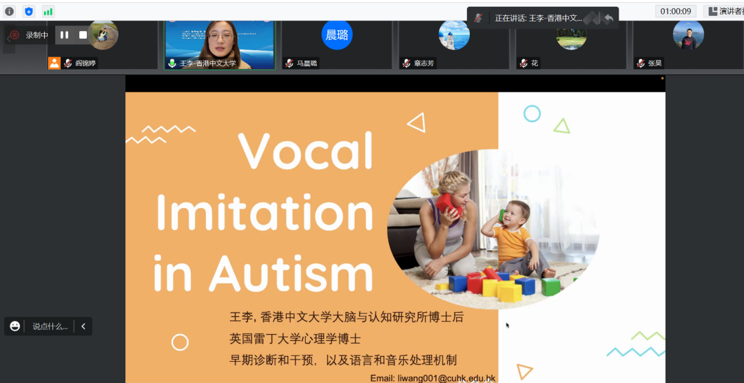 山东大学副研究员张昊、复旦大学副研究员徐坤宇、香港中文大学博士后王李、北京语言大学主管康复治疗师章志芳、湖南大学博士后郭承禹、中日友好医院主管语言治疗师葛丽君、华东师范大学物理治疗师瞿璐、日本筑波大学博士黄金峰、伟德源自英国始于1946副教授阎锦婷共9位青年讲者,从不同的方面和各自专业的角度,分析了语言障碍儿童的言语行为,探索了异常语言现象的病理机制。