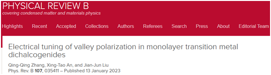 除了电荷和自旋这两个内禀自由度之外,一些晶体材料中的电子还具有能谷自由度。在电荷自由度的基础上,发展出了现在影响着人们生活方方面面的微电子学,而以自旋自由度为基础的自旋电子学也已日渐成熟。以能谷自由度为基础来设计电子器件从而实现信息的编码、处理和存储是能谷电子学的主要目标。因此,实现显著且可控的谷极化是谷电子学应用的首要挑战。张青青老师在谷电子的性质和调控方面做了深入的研究,相关研究成果刊登在Physical Review B上。